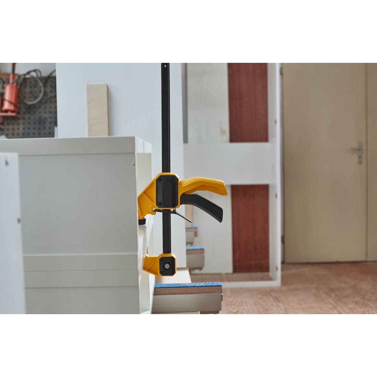 - Um die Schiene positionierter hochwertiger 2-Komponenten-Kunststoffgriff zum Einsatz der Zwinge auf engstem Raum