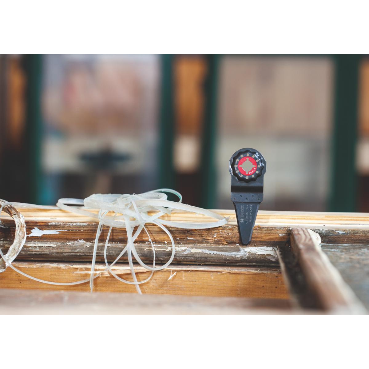 Zum Schneiden von weichen Materialien - Renovierer, die weiche Dichtungsmassen, Dämmstoffe und Fensterkitt schnell durchschneiden und entfernen müssen, profitieren von dem AIZ 28 SC Fugenmesser der oszillierenden Multifunktionsklinge, die wir speziell für diese Aufgabe entwickelt haben.Geeignet für: