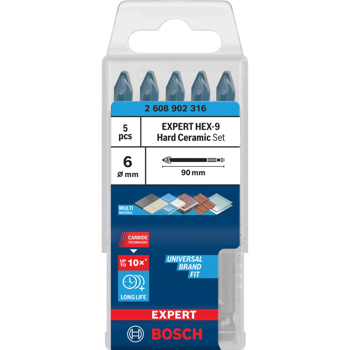 - Erweiterte Produktinformationen EXPERT HEX-9 Hard Ceramic HEX-9 Bohrer-Set, 6 x 90 mm, 5-tlg. von BoschHält bis zu 10-mal länger als ein Bosch CYL-9 Soft Ce… Mehr