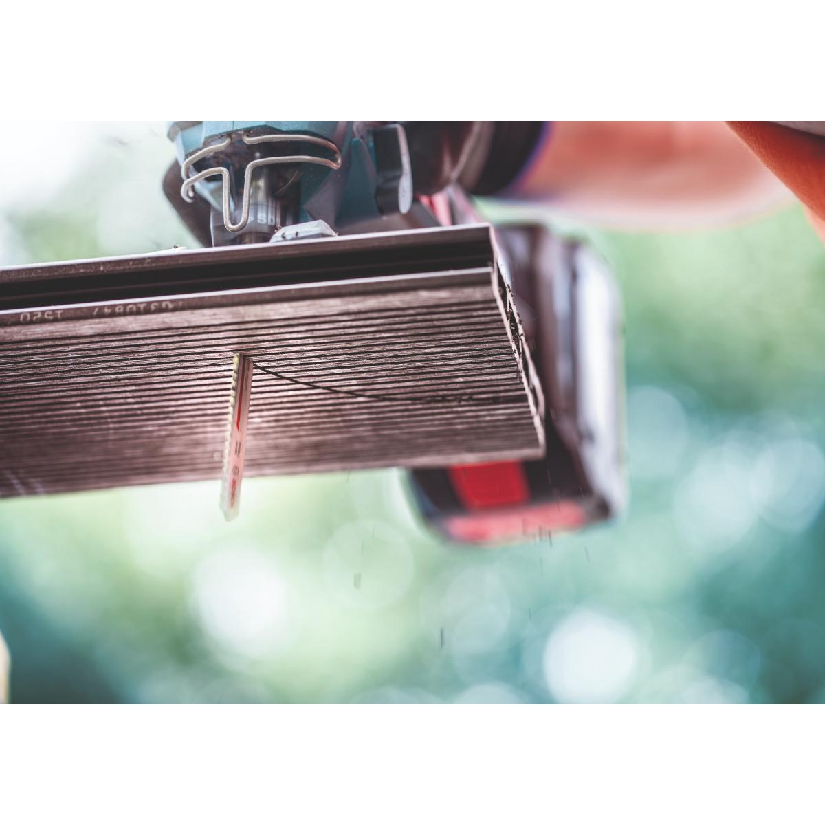 Carbide Technology für ausdauernde Leistung - Feststoffoberflächenmaterialien sind in modernen Bad- und Kücheninstallationen vielseitig einsetzbar und leichter zu schneiden als Stein oder Keramik. Sie müssen sorgfältig bearbeitet werden, damit du keinen Fehler machst, denn dieser wäre teuer. Das EXPERT Plastic Composites clean T301CHM wurde extra für diese Arbeit konzipiert und ist robust genug. Diese Eigenschaften machen das Bosch EXPERT Plastic Composites clean T301CHM-Stichsägeblatt zur perfekten Wahl für die Einrichtung von Küchen und Badezimmern sowie für WPC-Arbeiten. Durch seine lange Lebensdauer wird ein gutes Preis-Leistungs-Verhältnis und gleichzeitig ein Ergebnis von höchster Qualität erzielt. Überragende Lebensdauer dank Bosch Carbide Technology- Geschränkte Zähne, um dickere Materialien effektiv zu schneiden