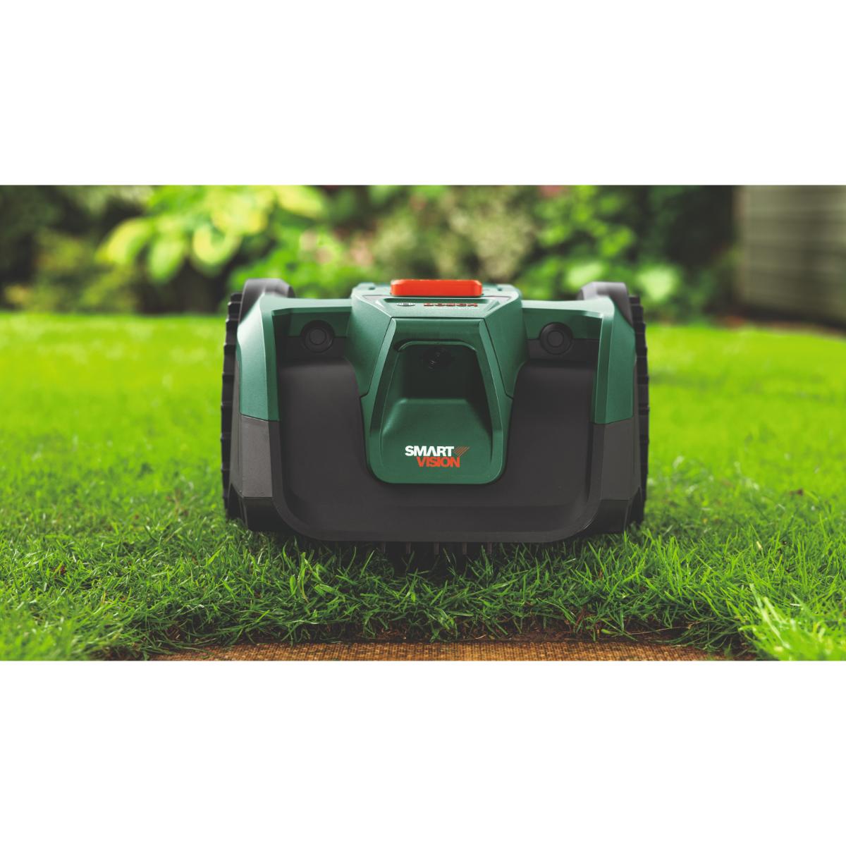 Schnellstart für das Mähen von Rasenflächen bis 100 m². Einfache Einrichtung mit 3 Tastendrücken, vom Geräteschuppen bis zum Mäheinsatz in Sekundenschnelle. Das SmartVision-System ermöglicht die drahtlose, infrastrukturfreie Einrichtung. Teilautonome Freiheit für das Mähen mehrerer Rasenflächen und Zonen bis zu 100 m². 3-schneidige Messerscheibe mit 16 cm Schnittbreite. Einstellbare Schnitthöhe von 20 bis 60 mm für individuelle Ergebnisse. SpotMow konzentriert sich auf bestimmte Stellen im Garten, um den Rasen vollständig zu mähen.Features:
