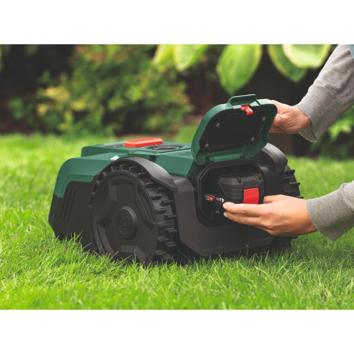 - Einfache Einrichtung mit 3 Tastendrücken, vom Geräteschuppen bis zum Mäheinsatz in Sekundenschnelle