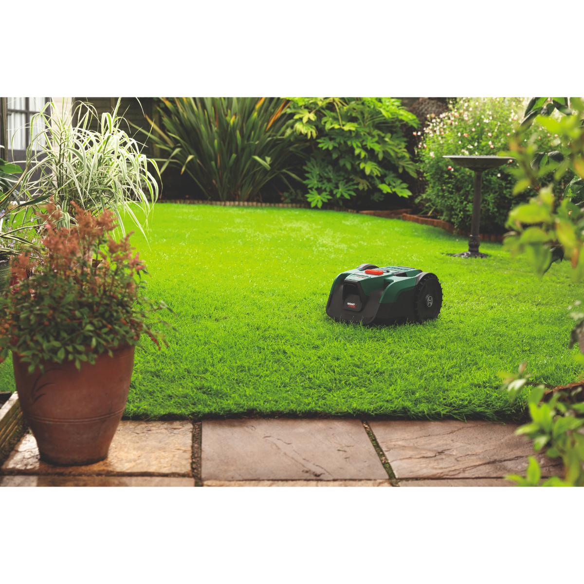 - Teilautonome Freiheit für das Mähen mehrerer Rasenflächen und Zonen bis zu 200 m²