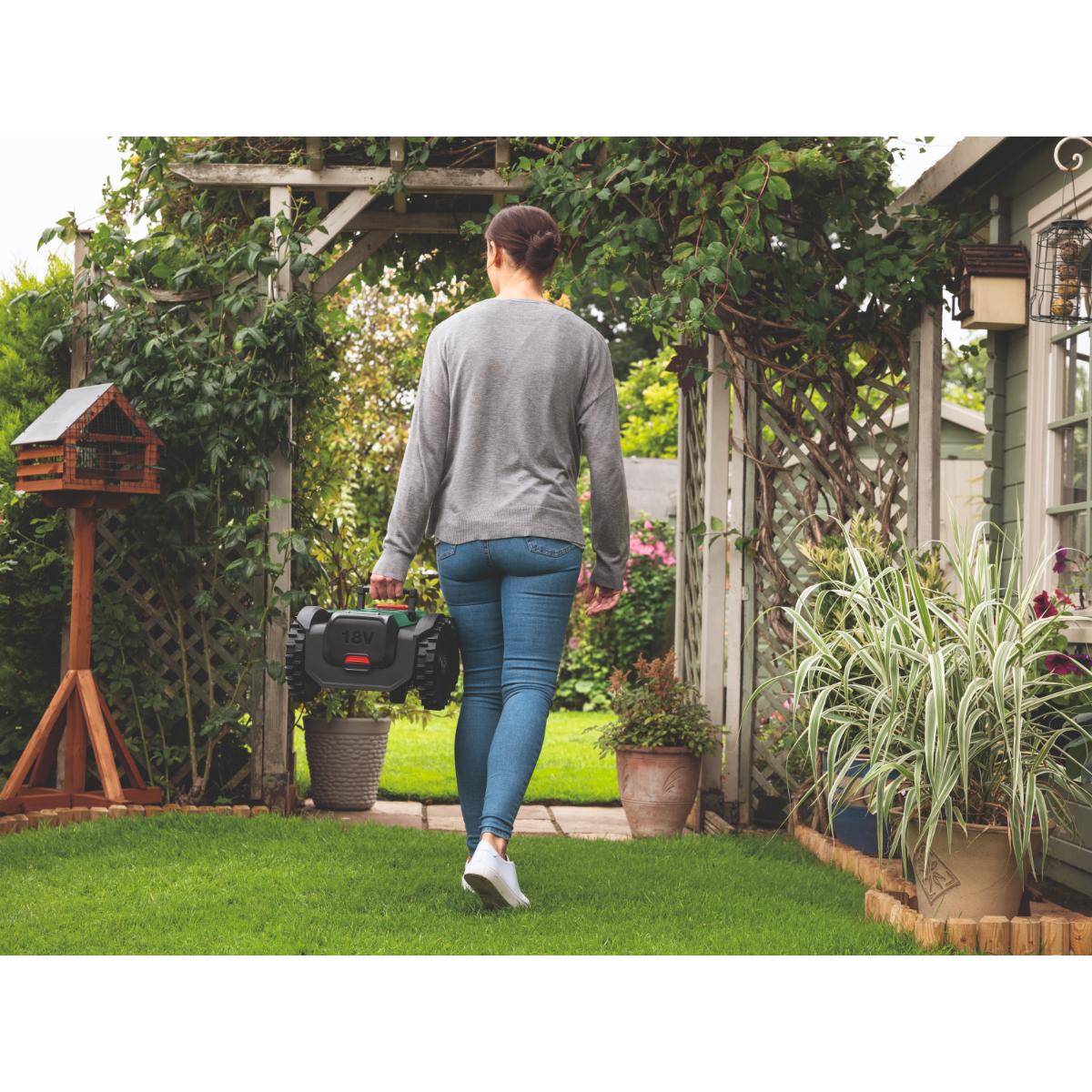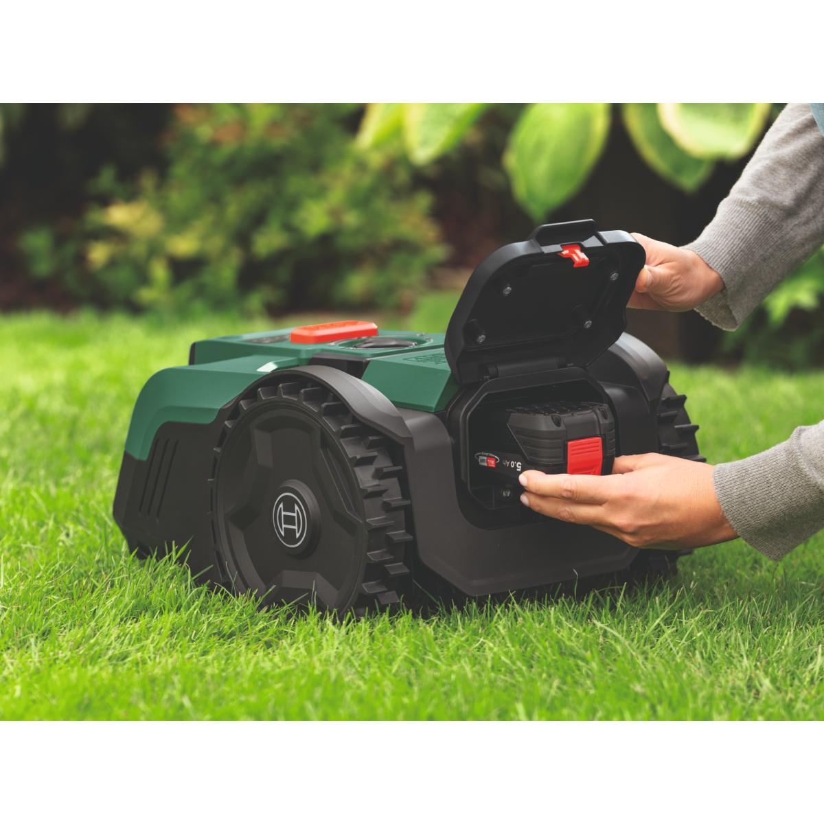 - Einfache Einrichtung mit 3 Tastendrücken, vom Geräteschuppen bis zum Mäheinsatz in Sekundenschnelle