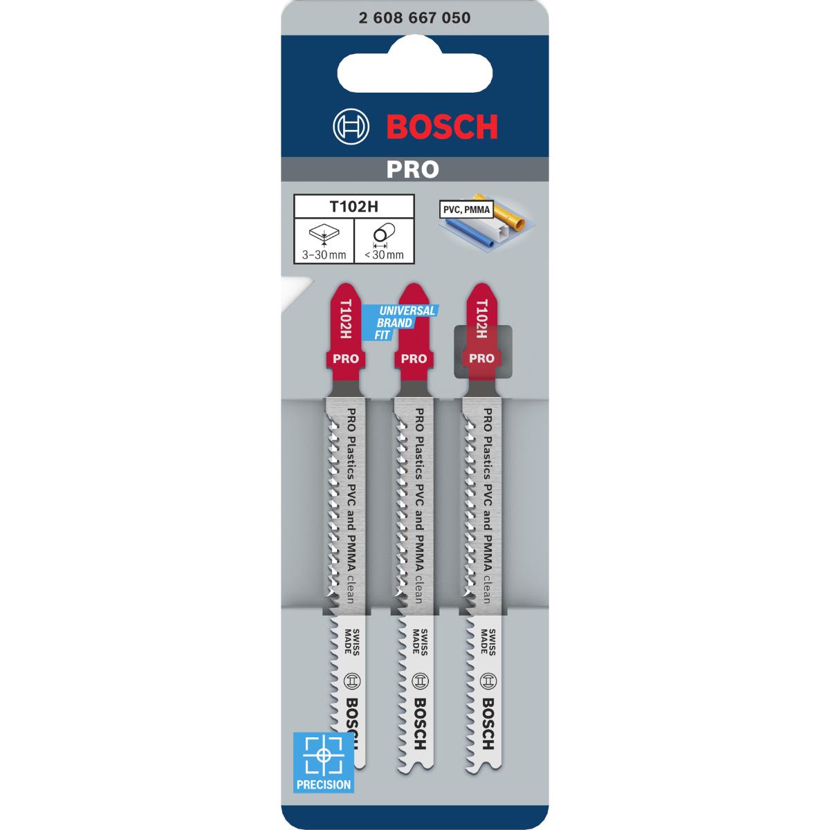 Bosch PRO Plastics PVC clean T102H Stichsägeblatt, 100 mm, 3-Stück