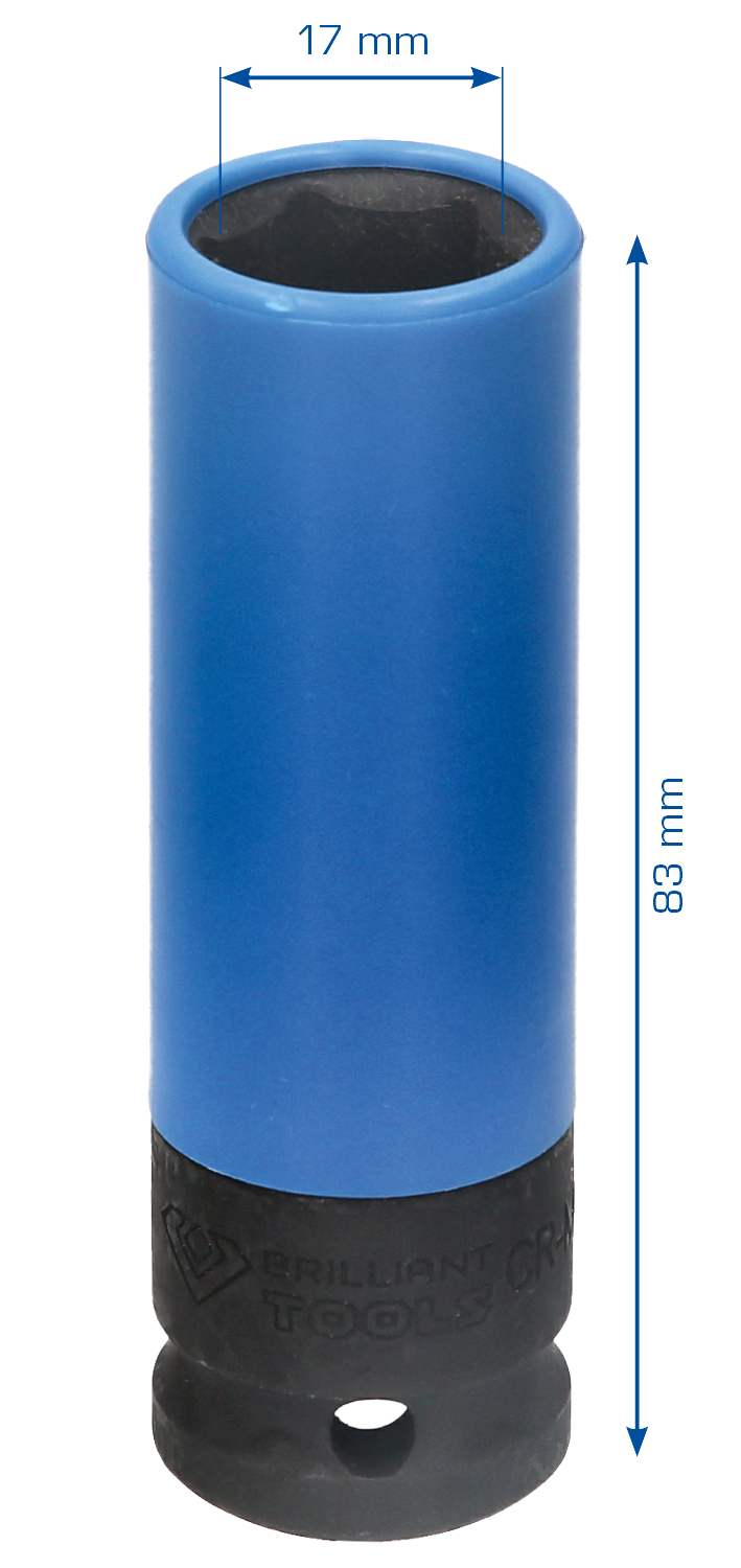 Brilliant Tools 1/2" Alu-Felgen-Kraft-Stecknuss, 17 mm - BT691006 - sehr robuste Stecknuss - extrem hohe Qualität - für Schlagschrauber geeignet - Die sehr robuste BRILLIANT TOOLS Alu-Felgen-Kraft-Stecknuss BT691006 sollte in keiner Garage oder Werkstatt fehlen. Die extrem hohe Qualität und Standfestigkeit wird durch speziellen Chrom-Molybdän Stahl erreicht welcher Sie auch bei härtesten Einsätzen nicht im Stich lässt. Die sehr gute Verarbeitung garantiert passgenauen Sitz und hohe Kraftübertragung. Schlagschrauber oder Ratsche, für beide Antriebe ist diese Stecknuss bestens geeignet. - UNSERE QUALITÄT: BRILLIANTUNSERE PREISE: SMART - In jedem Werkzeug steckt mehr als ein viertel Jahrhundert Erfahrungen unserer Experten. Diese kompromisslose Qualität, Profi-Werkzeuge mit höchster Qualität für den harten Arbeitsalltag, ist eines der Erfolgsrezepte für uns. Wir verzichten auf eine große Vertriebsstruktur und extravagante Marketing-Aktivitäten und können Dir die Produkte daher zu einem sensationell günstigen Preis-/Leistungsverhältnis anbieten. Spare bares Geld ohne Deine Qualitätsansprüche herunterzuschrauben!