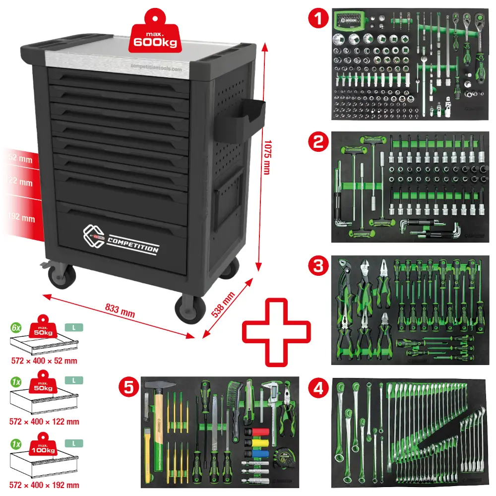 COMPETITION Werkstattwagen mit 8 Schubladen und 341 Premium-Werkzeugen