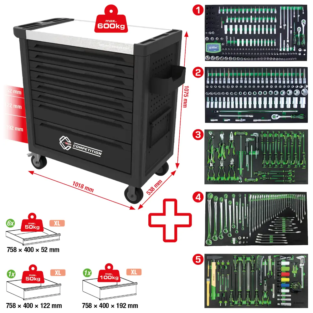 COMPETITION Werkstattwagen mit 8 Schubladen und 434 Premium-Werkzeugen