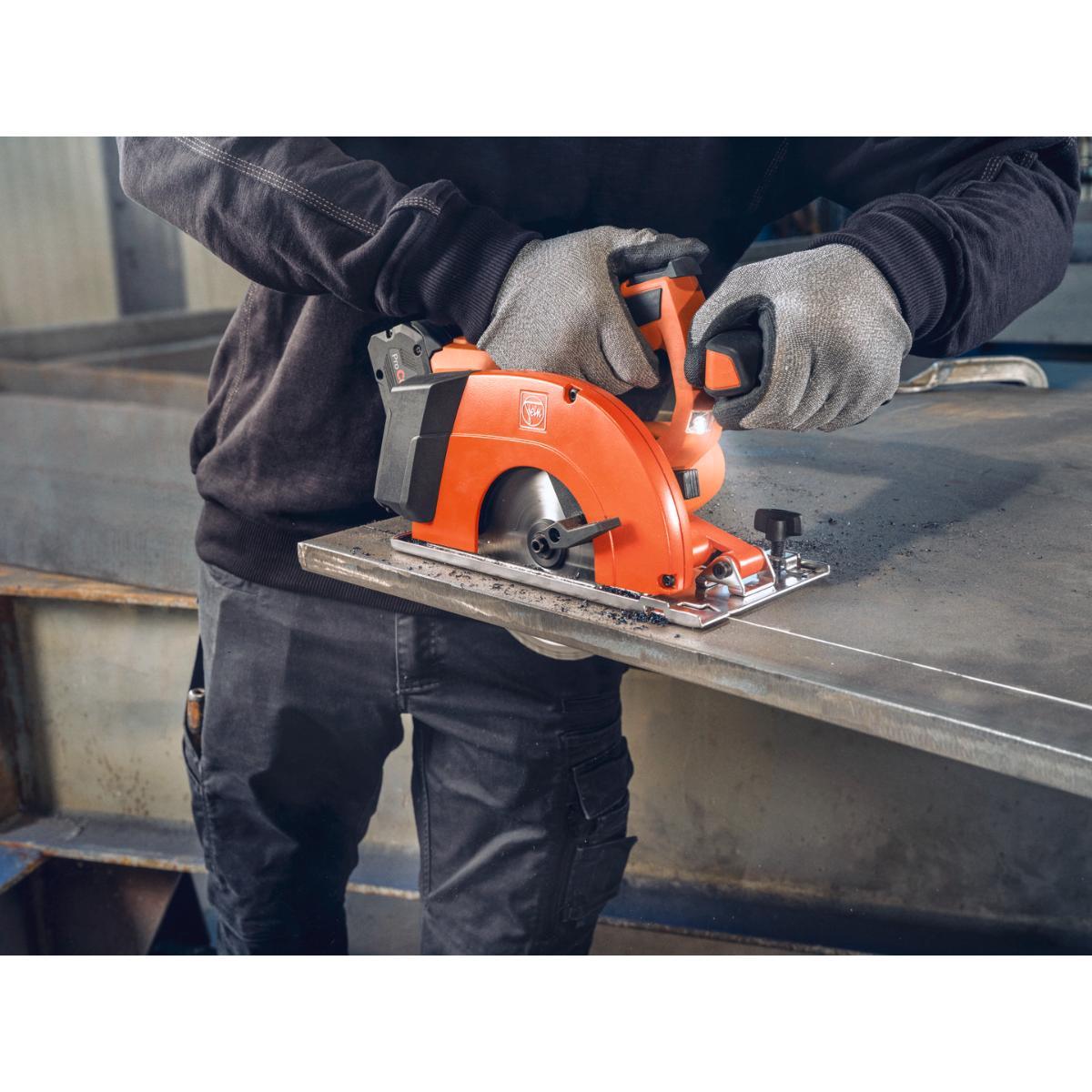 - Schnelles und präzises Sägen von Rohren, Profilen, Metallgittern und Blechen bis 57 mm Schnitttiefe möglich. Gerade, lange Schnitte dank Führungsschienenadapter - kompatibel zu Führungsschienen von Makita, BOSCH, Festool, Mafell.