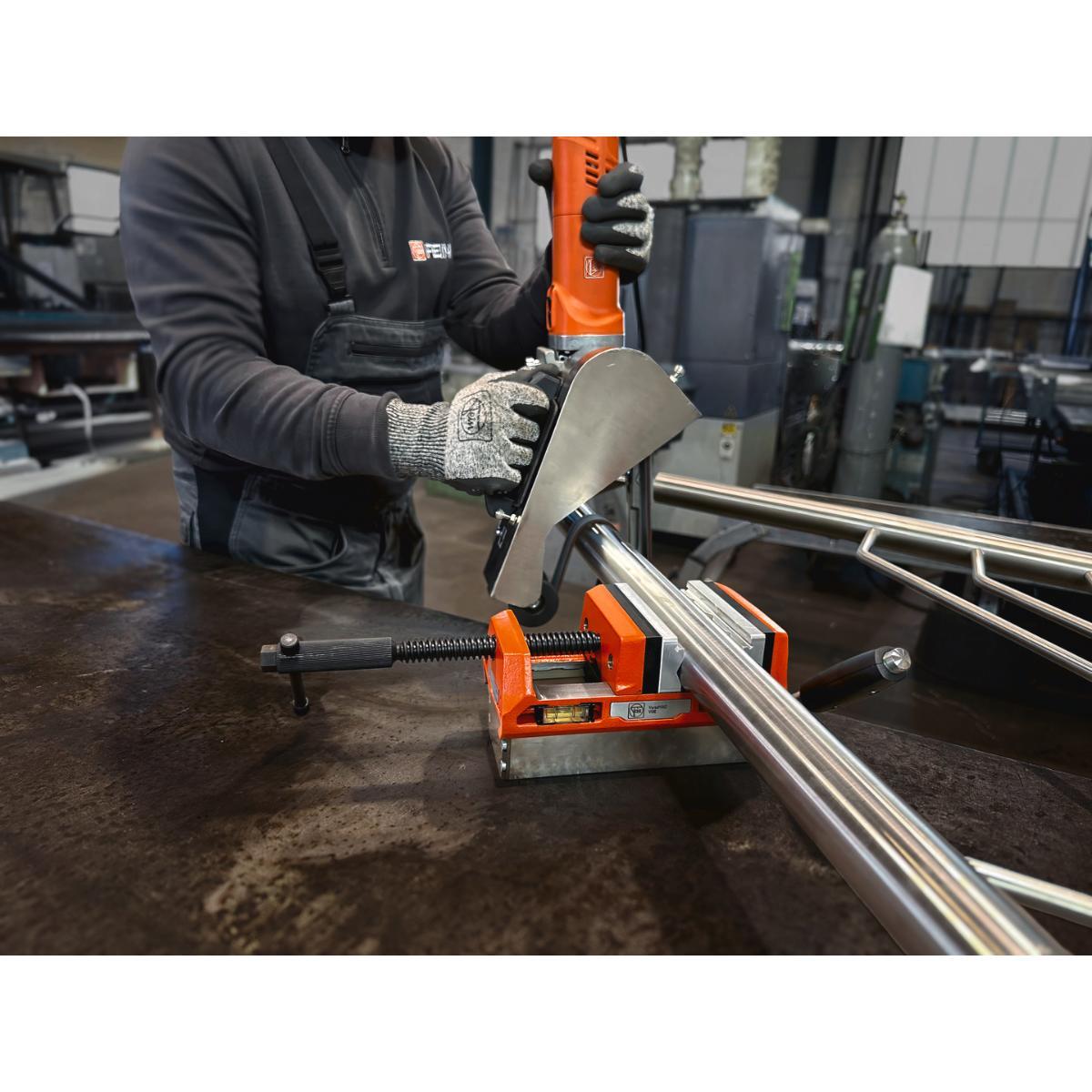 - FEIN VersaMAG Schutzbackenpaar (P) Prisma 110 mm aus Aluminium. Bei der Bearbeitung von Rund- und Vierkantprofilen bis Ø 30 mm erreichen die VersaMAG Schutzbacken einen sicheren Halt. Spannen von Flachmaterial dank der oberen 90° Einfräsung problemlos möglich. Kein Verkratzen des Materials – Höchste Qualität auch bei empfindlichen Werkstücken wie Edelstahl, Aluminium oder Kunststoffen. Dank der Schutzbacken kein Wackeln oder Verrutschen des Werkstücks. Die FEIN Premium-Qualität der Schutzbacken garantiert Langlebigkeit bei gleichzeitigem Schutz der Materialien. Spart Nachbearbeitungszeit und steigert die Produktivität von empfindlichen Werkstücken. Nur kompatibel mit dem FEIN VersaMAG Schraubstock Set (9 07 01 003 02 0).