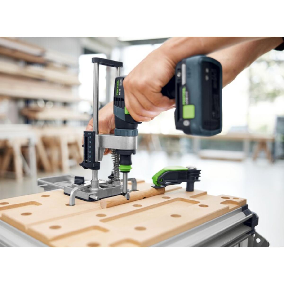 - Parallelanschlag für schnelles, präzises und wiederholgenaues Bohren parallel zu einer Kante