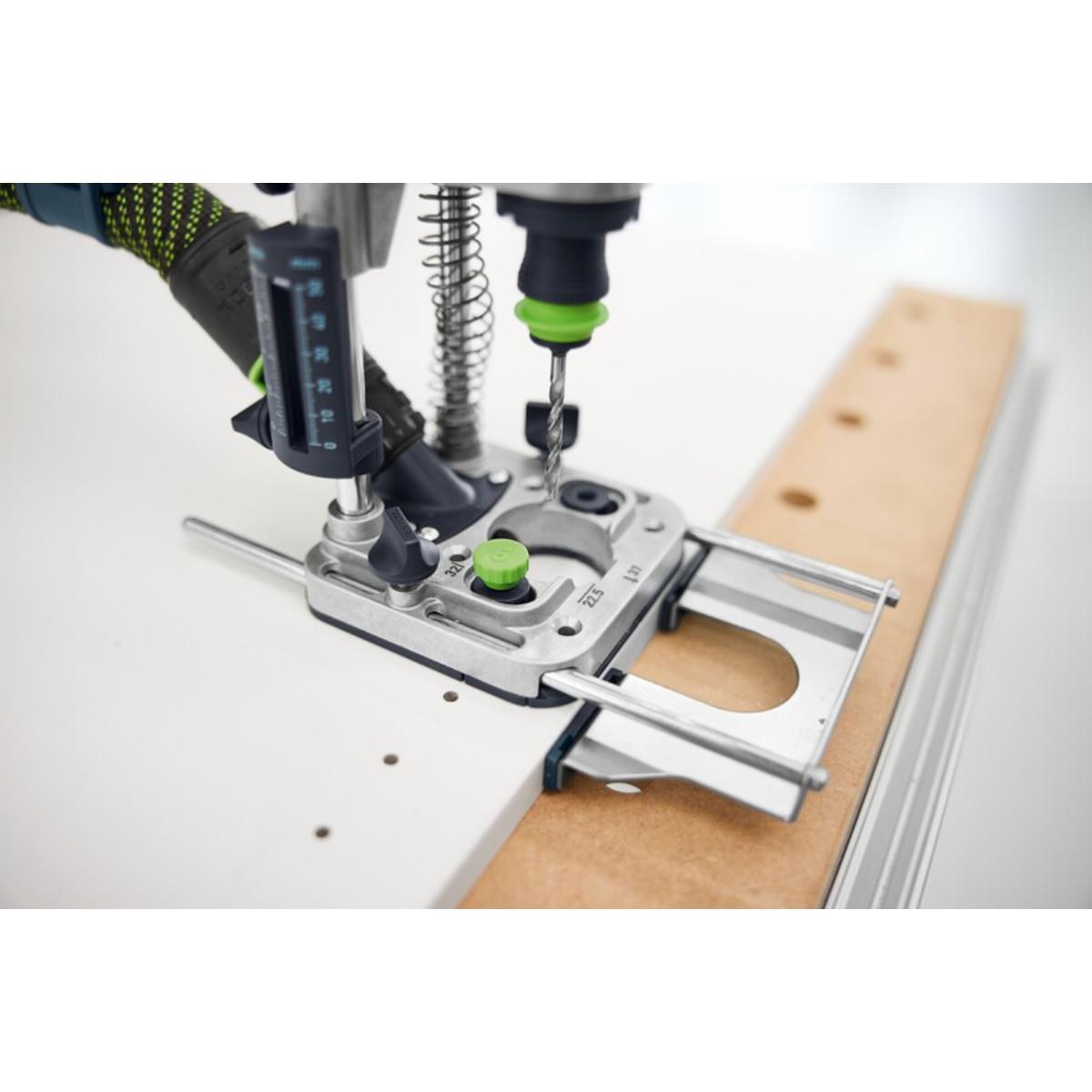 - für schnelles, präzises und wiederholgenaues Bohren parallel zu einer Kante und in Plattenkanten