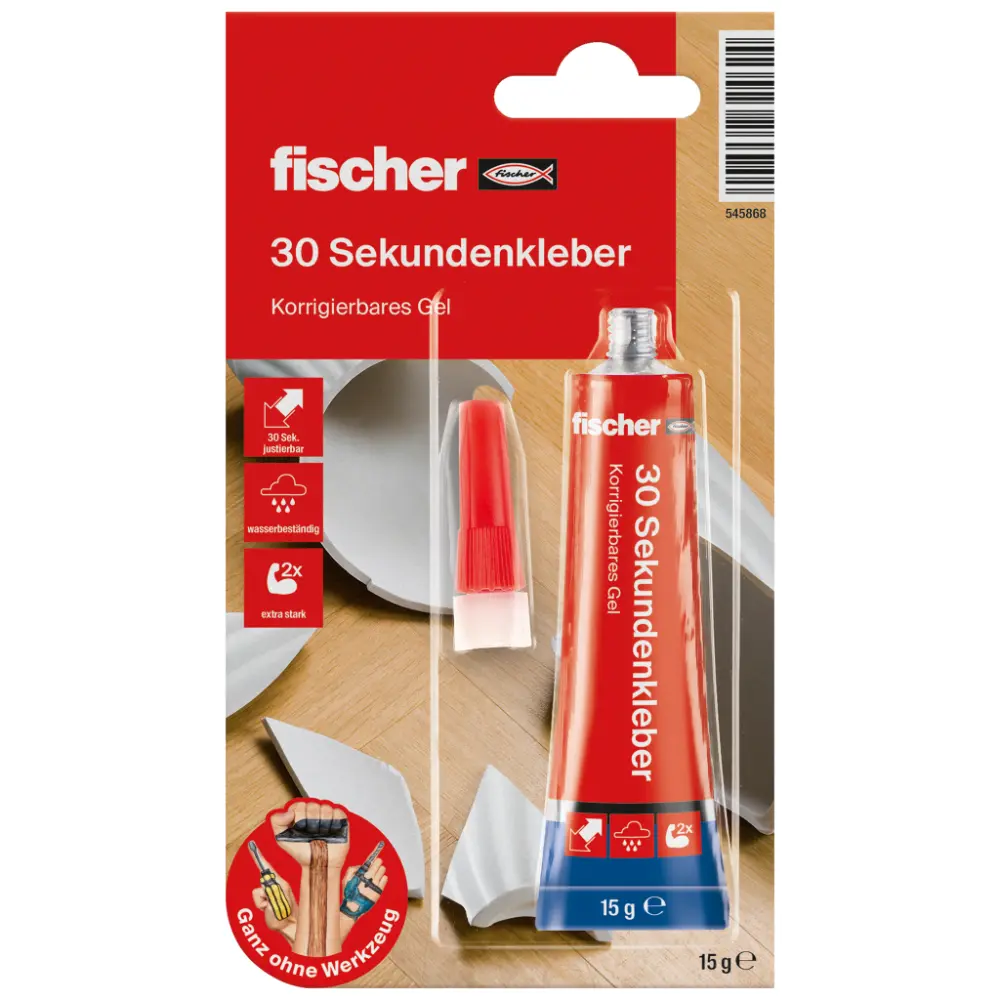 - Erweiterte Produktinformationen 30 Sekunden Kleber 15g von Fischer1, 2, 3 ... so schnell, wie etwas kaputt geht, ist es auch wieder repariert. Das Besondere… Mehr