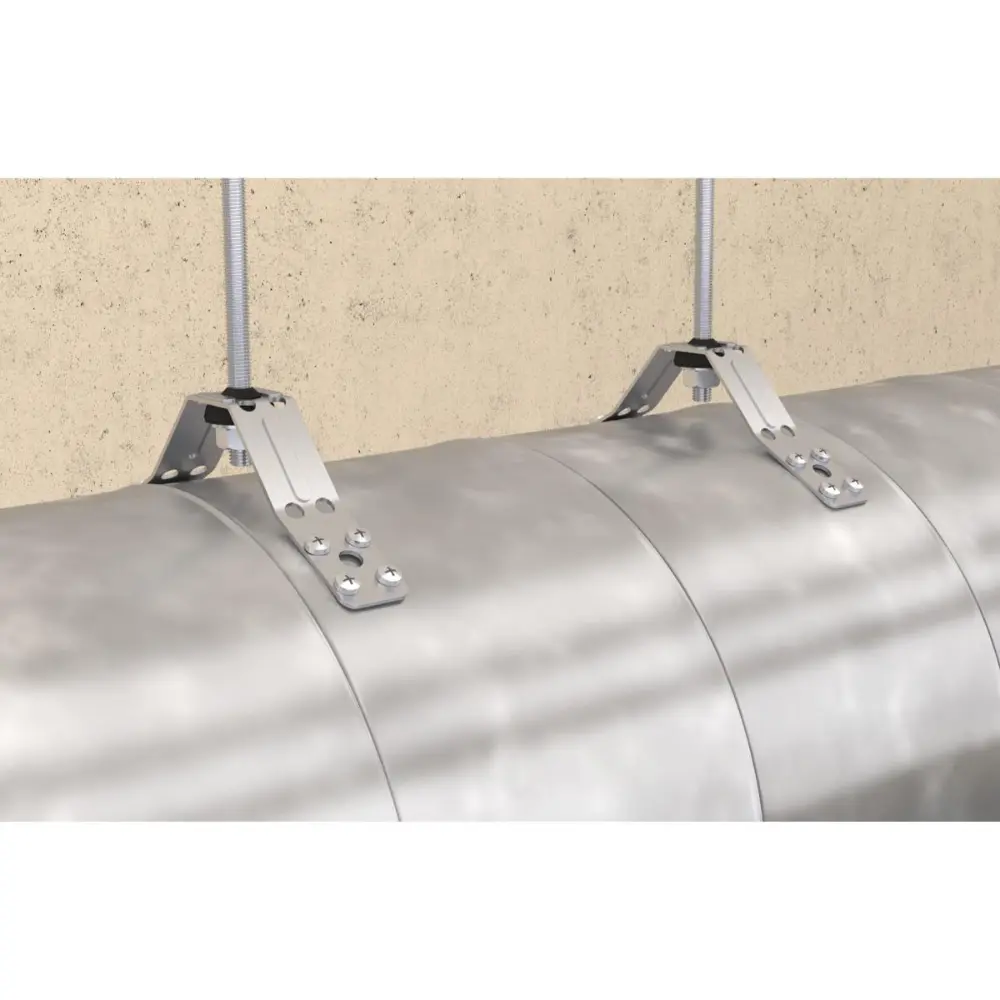 Der fischer Deckenabhänger LRB ist ein Befestigungsbauteil mit Schalldämmelement in genieteter und gesteckter Ausführung zum Abhängen von Wickelfalzrohren mit Gewindestangen. Das Schalldämmelement vermindert die Übertragung der Vibrations- und Strömungsgeräusche. Die Mehrfachlochung der Deckenabhänger ermöglicht eine einfache Befestigung mit Bohrschrauben oder Nieten. Das Durchgangsloch in den Deckenabhängern erlaubt die einfache Ausrichtung und Höhenregulierung der Befestigung. Die genietete Ausführung verleiht den Deckenabhängern eine erhöhte Stabilität. Die Sollbiegestelle ermöglicht eine ideale Anpassung an den Rohraußendurchmesser.