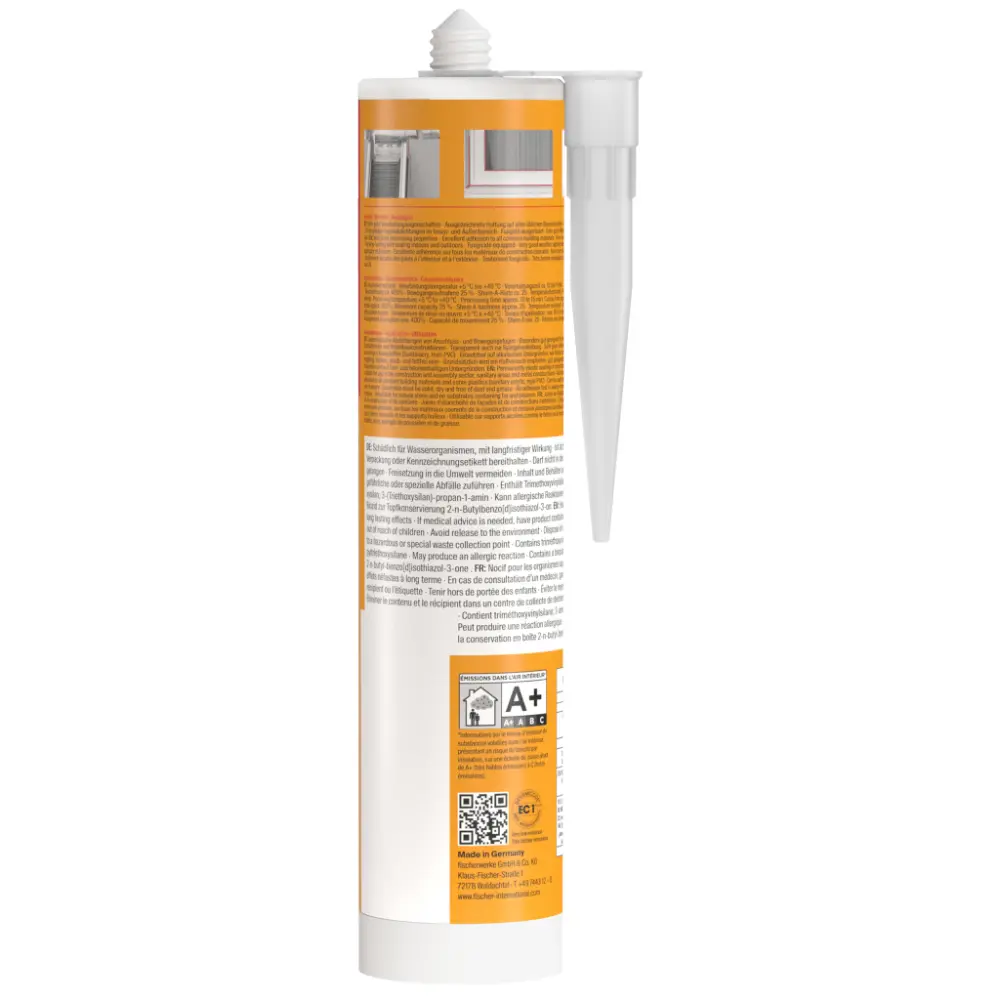 Das fischer Premium Bausilikon Construction Pro SI ist mit dem sehr geringem Volumenschwund und der geringen Geruchsentwickelung ideal für anspruchsvolle Anwendungen. Der Silikondichtstoff auf Alkoxy-Basis bietet besonders hohen Hafteigenschaften auf einer Vielzahl von Untergründen im Innen- und im Außenbereich. Das Bausilikon eignet sich für die Fensterversiegelung und für Bewegungs- und Anschlussfugen an Wand und Dach. Dank der pilzhemmenden Wirkung kann das fischer Construction Pro SI optimal im Sanitärbereich eingesetzt werden. Das leicht zu verarbeitende und zu glättende Silikon ermöglicht einen zügigen Arbeitsfortschritt.Anwendung
