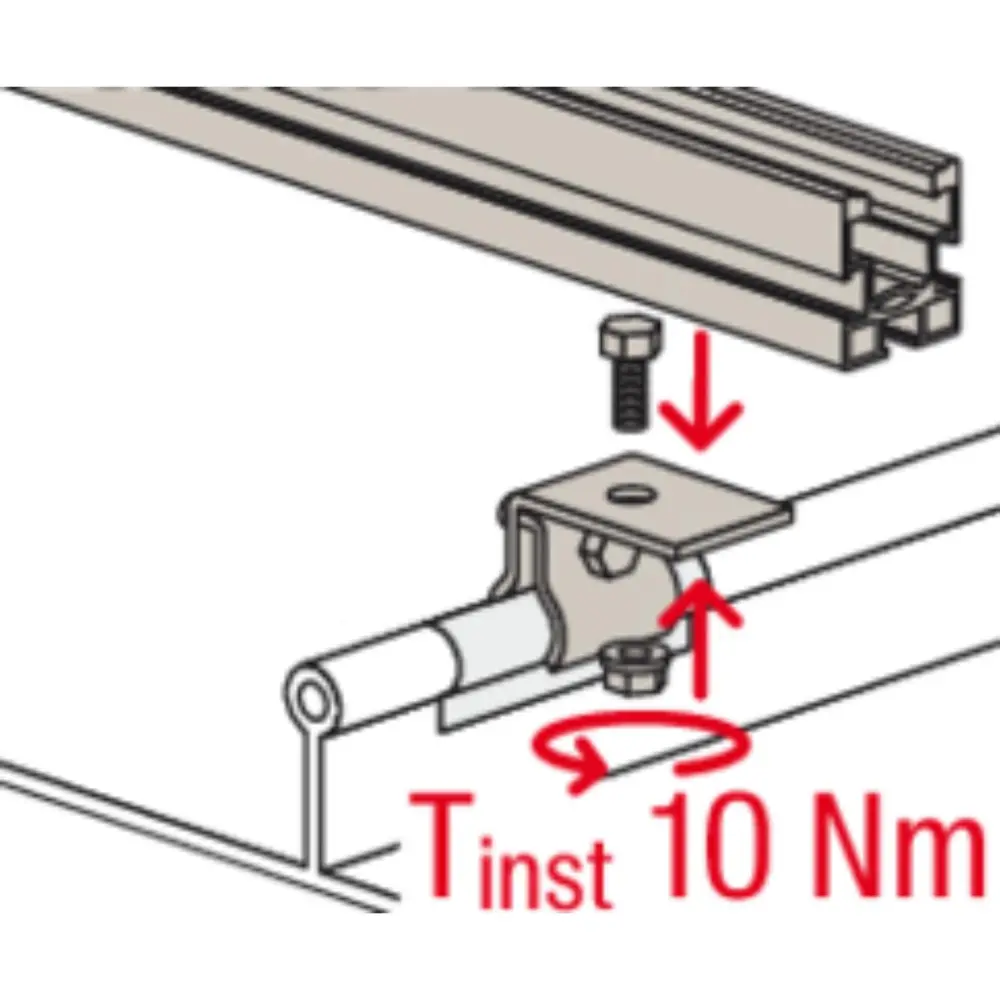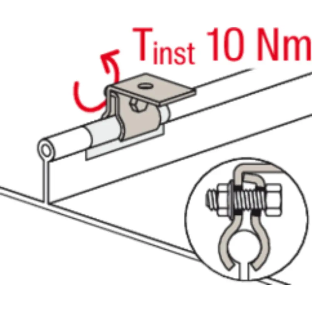 DLAK ist der Haken aus Edelstahl AISI 304 zur Befestigung von Aufbauten für Photovoltaikanlagen auf Kalzip Rundstehfalzblechdächern. Schrauben zur Verbindung mit der Schiene müssen separat bestellt werden. Folgende Zubehörteile werden empfohlen:- Sechskantschraube: SKS M8x20 A2 (505614)