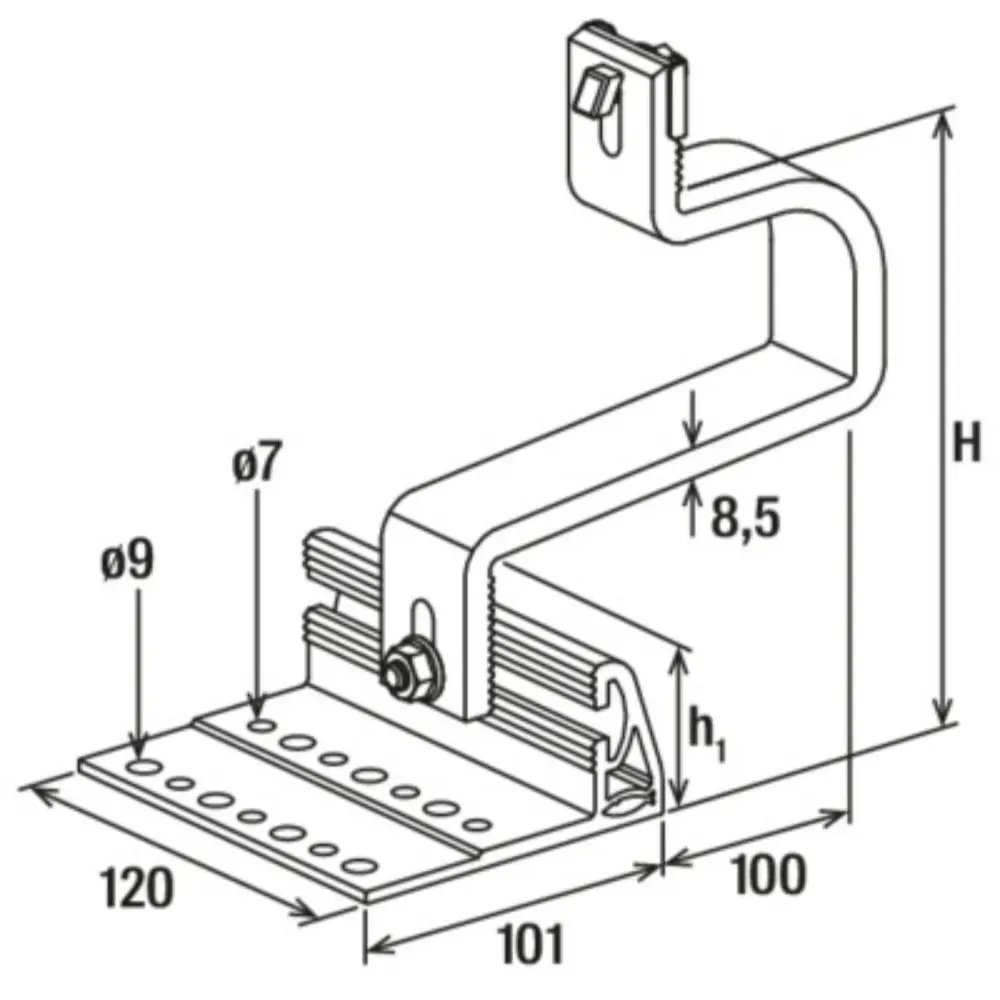 Der Aluminiumhaken RH AL eignet sich für den Aufbau von Photovoltaikanlagen auf Steildächern mit Dachziegeln unterschiedlicher Dicke. Durch die horizontale Verstellung an der Grundplatte kann der Dachhaken exakt an den Dachziegel angepasst werden.Die untere Verstellposition ermöglicht die Anpassung des Dachhakens an unterschiedliche Ziegelstärken. Die obere Verstellposition ermöglicht es, den Abstand der Schiene von der Oberseite des Dachziegels einzustellen. Die Form des Hakens ist so konzipiert, dass er den gesetzlich vorgeschriebenen Schnee- und Windlasten standhält, ohne den Ziegel zu beschädigen.