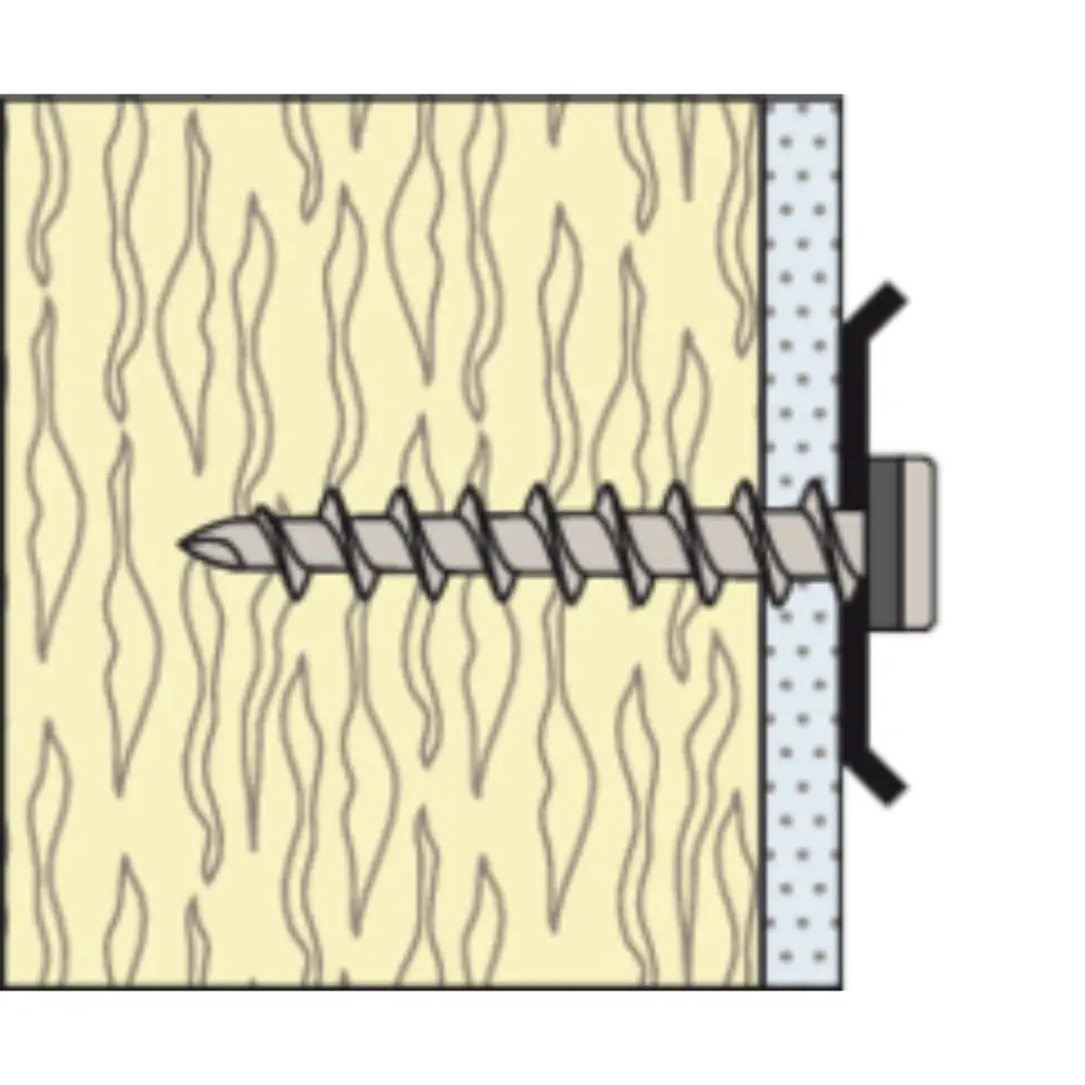 Mit der fischer Dämmstoffschraube FID-Z können dünne Bleche an verputzten WDVS-Fassaden aus Polystyrol, Mineralwolle, Holzweichfaser und Polyurethan Dämmplatten befestigt werden. Die spezielle Spitzengeometrie dreht sich dabei ohne vorbohren durch das Blech direkt in die Fassade. Anbauteile wie Kappleisten oder Blechverwahrungen können somit problemlos und schnell befestigt werden. Die Dichtscheibe am Schraubkopf dichtet das Bohrloch gegen Witterungseinflüsse ab.