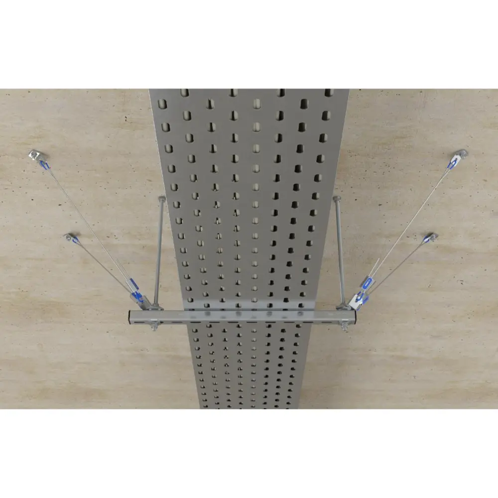 Das seismische Drahtseilsystem FWI-S ist für die Befestigung und Sicherung von Installationen in Gebäuden konzipiert. Es bietet eine effektive Lösung zur Sicherung von Installationen durch horizontal einwirkende Kräfte wie z.B. bei Erdbeben. Daneben kann das FWI-S System auch zur Abhängung von Installationen der technischen Gebäudeausrüstung verwendet werden. Die vorkonfektionierten Sets in den Längen 2, 3 oder 5 m sind mit allen notwendigen Komponenten ausgestattet, um vorhandene Installationen sicher abzuspannen oder Neuinstallationen zu sichern. Drei unterschiedliche Drahtseildurchmesser 2, 3 und 5 mm erlauben die Auswahl des passenden Drahtseilsystems für Ihren Lastfall. Durch eine Farbcodierung sind die einzelnen Sets bei der Montage und im Betrieb jederzeit eindeutig identifizierbar.