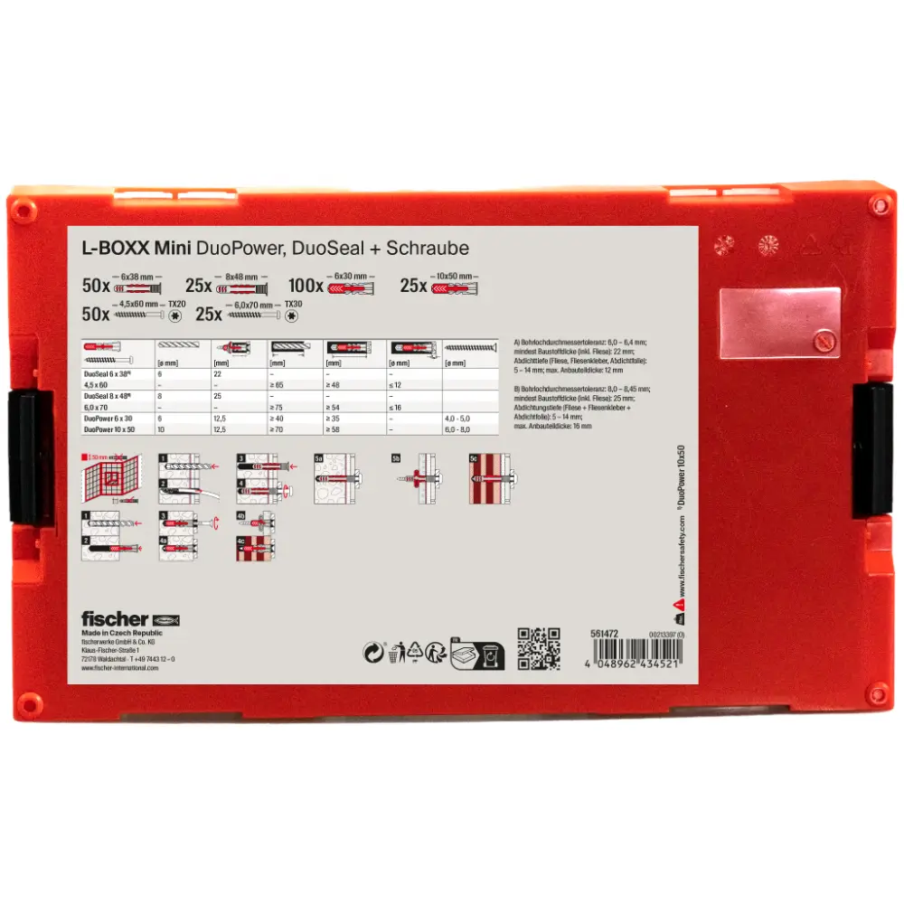 Fischer Dübelsortiment L-Boxx mini DuoPower und DuoSeal + Schraube (275 Teile)