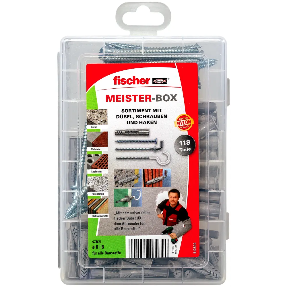 Fischer Dübelsortiment Meister-Box Universaldübel UX + Schrauben + Haken