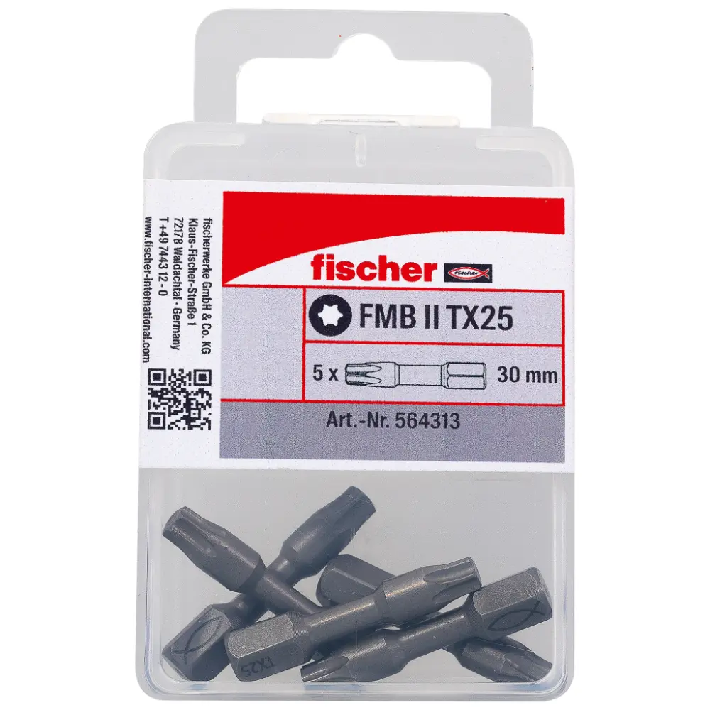 Der fischer Bit FMB II ist ein Hochleistungs-Bit für besonders leistungsstarke Bohr- und Schlagschrauber. Die elastische Torsionszone ermöglicht dabei höchstmögliche Drehmomente.Der aufgeweitete Profilansatz sorgt für eine optimierte Fixierung des Bits in der Schraube. Die optimale Profilgeometrie in Kombination mit dem hochwertig gehärteten Stahl ermöglicht eine maximale Kraftübertragung bis in den Baustoff.