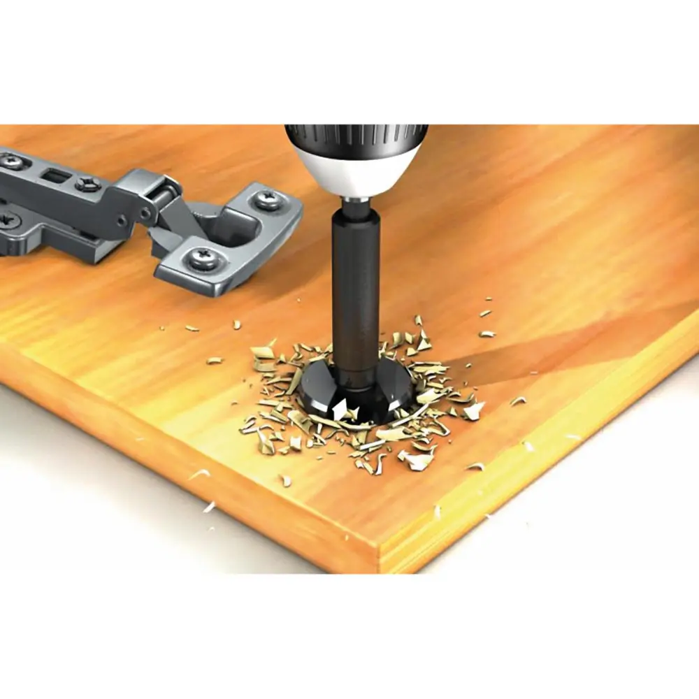 Forstnerbohrer mit Zentrierspitze für ein punktgenaues Anbohren. Durch gezahnte Umfangschneiden werden schnelle und ausrissfreie Bohrungen ermöglicht. Ideal geeignet zum Bohren von Sack-, Durchgangs- und Topfbundlöchern.