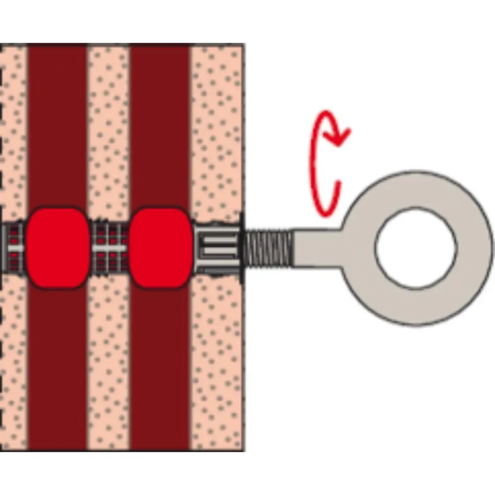 Die fischer Gerüstöse FI G kann mit verschiedenen, bauaufsichtlich zugelassenen Innengewindeankern von fischer gesetzt werden. Dies ermöglicht ohne Einschränkung des Haltwertes die mehrmalige Montage und Demontage des gleichen Befestigungspunktes. In Beton ist eine Kombination mit den Injektionsmörteln FIS V Plus und FIS EM Plus sowie dem Innengewindeanker RG und dem ZYKON-Hinterschnittanker FZAzu empfehlen. In Mauerwerk wird die Gerüstöse sicher mit dem fischer Injektionsmörtel FIS V Plus, der Ankerhülse FIS H und dem Innengewindeanker FIS E befestigt. Das System ist ideal, um Fassadengerüste, Spannseile und Rankgerüste zu befestigen.