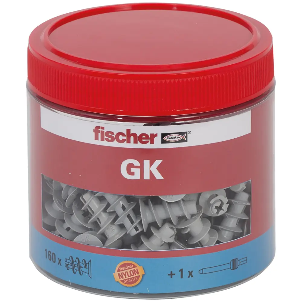 Der fischer Gipskartondübel GK ist aus hochwertigem Nylon gefertigt. Der Dübel wird in der Vorsteckmontage mit dem beigefügten Setzwerkzeug mit einem Akku-Schrauber oberflächenbündig in Gipskartonplatten eingedreht. Bis 15 mm Plattenstärke ist kein Vorbohren notwendig. Der fischer GK kann Holz-, Blech- und Spanplattenschrauben von 4 bis 5 mm Stärke sowie unterschiedliche Haken und Ösen aufnehmen. Dadurch ist er universell geeignet, um Bilder, Leuchten und Elektroinstallationen sicher und schnell zu befestigen.Baustoff
