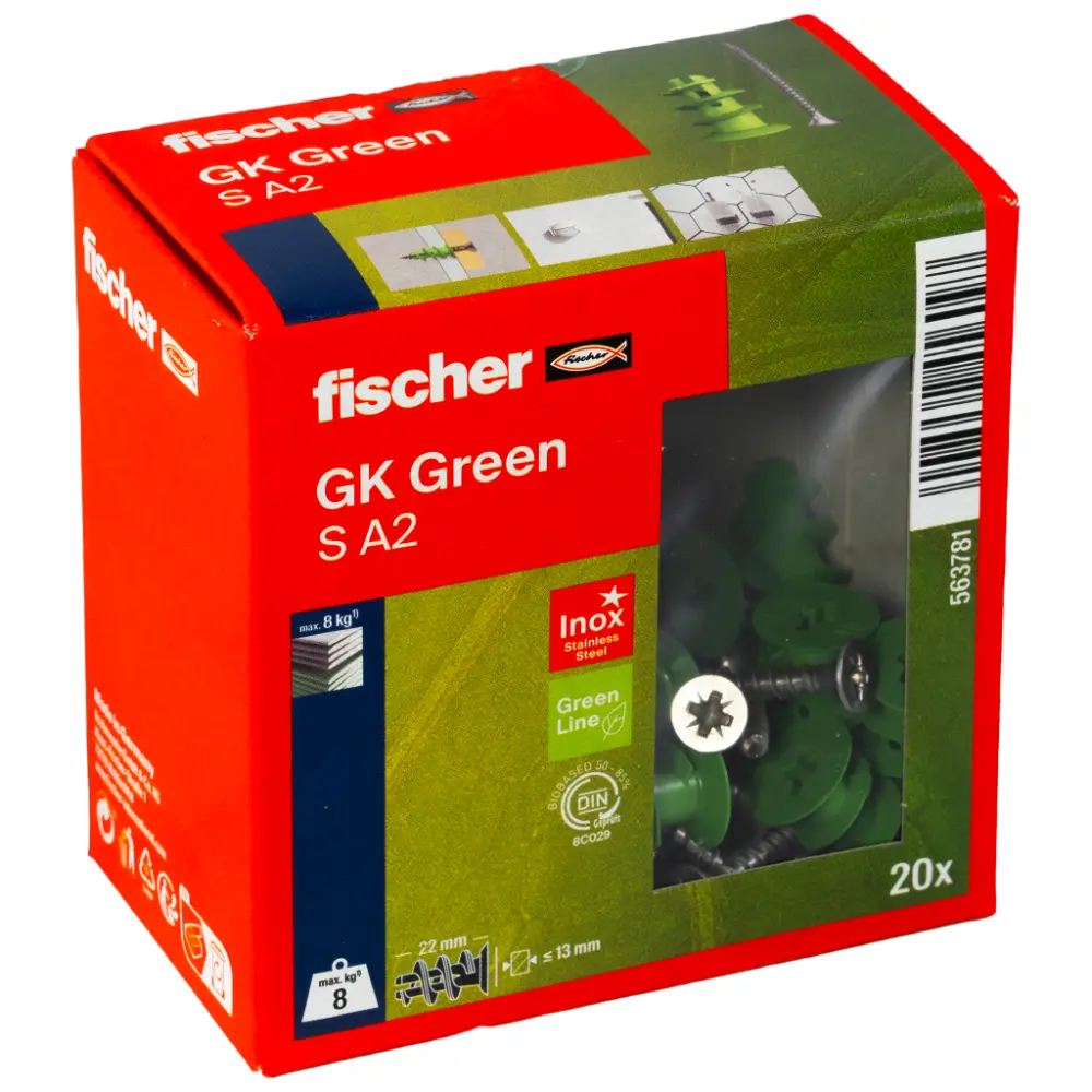 Gipskartondübel GK Green S mit Schraube A2 von Fischer