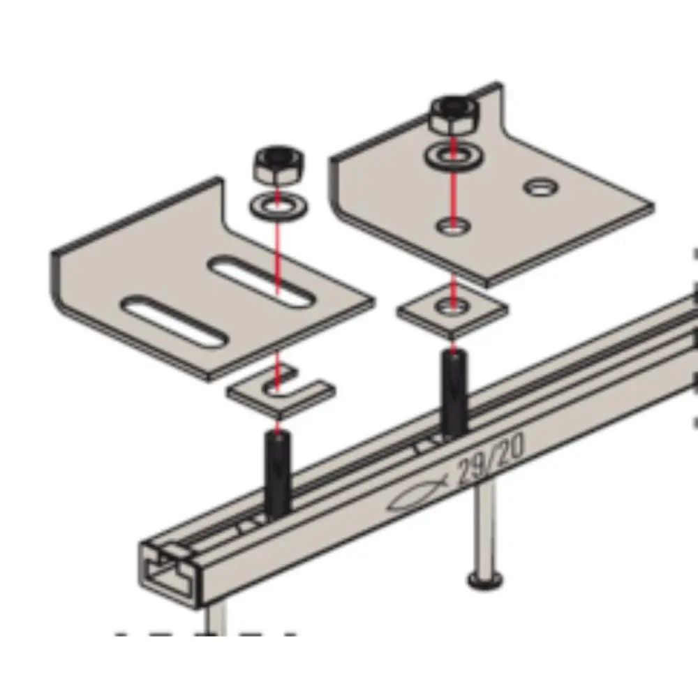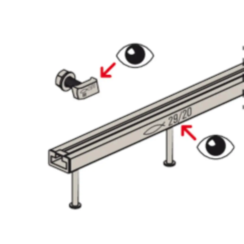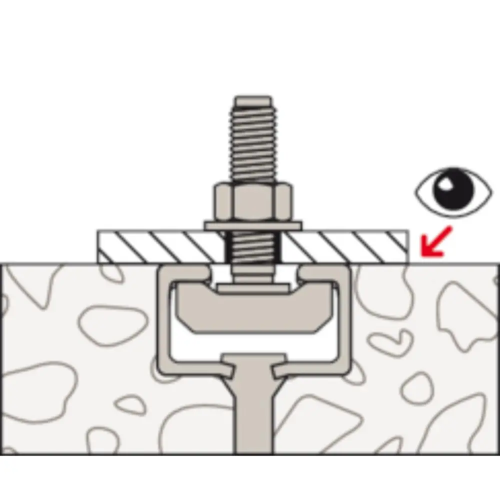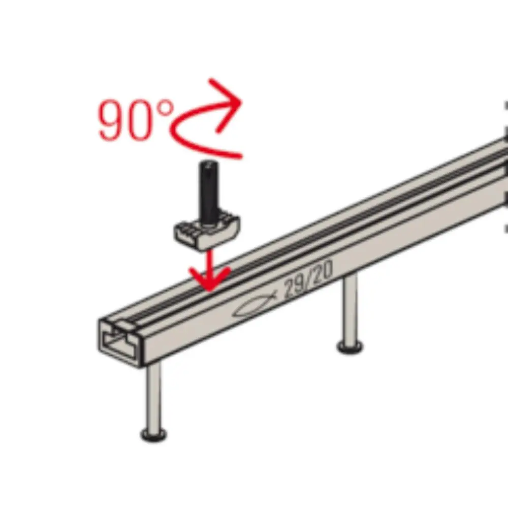 Verzahnte Hammerkopfschrauben, welche mit der passenden verzahnten Ankerschiene einen sauberen Formschluss bilden.