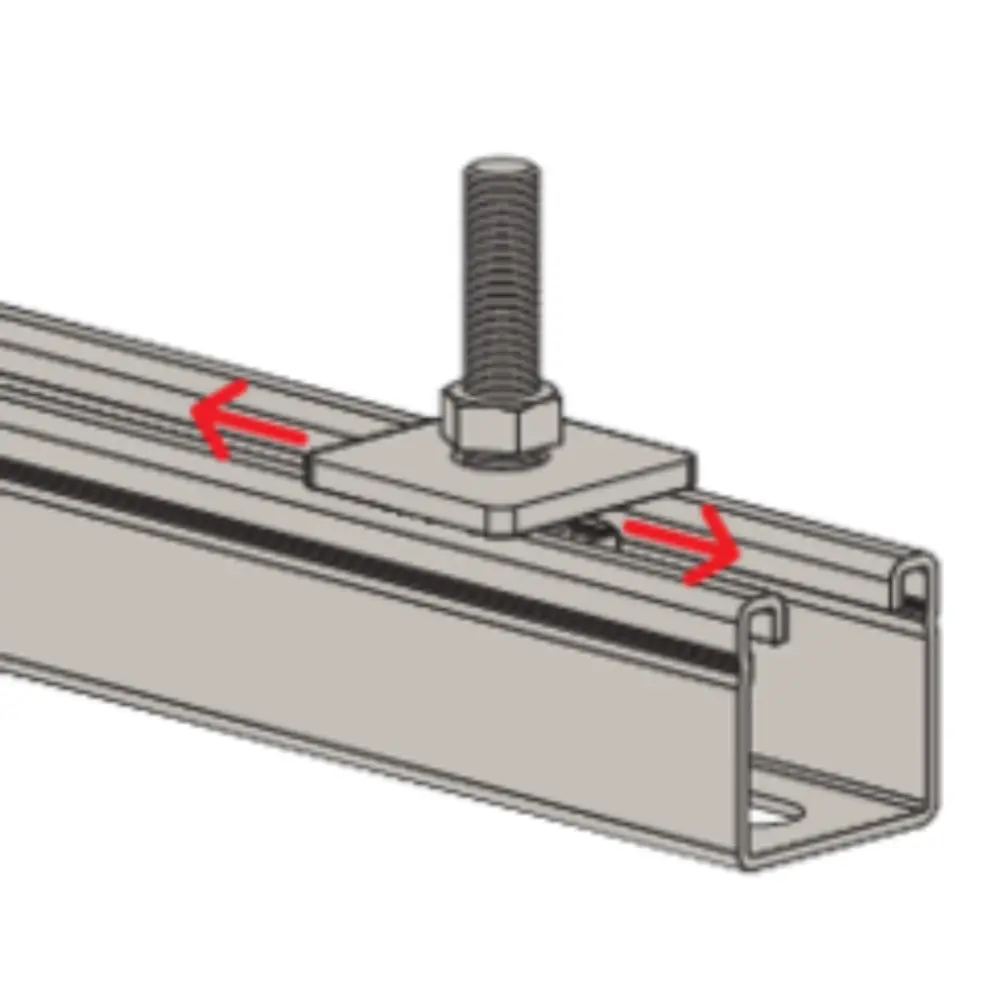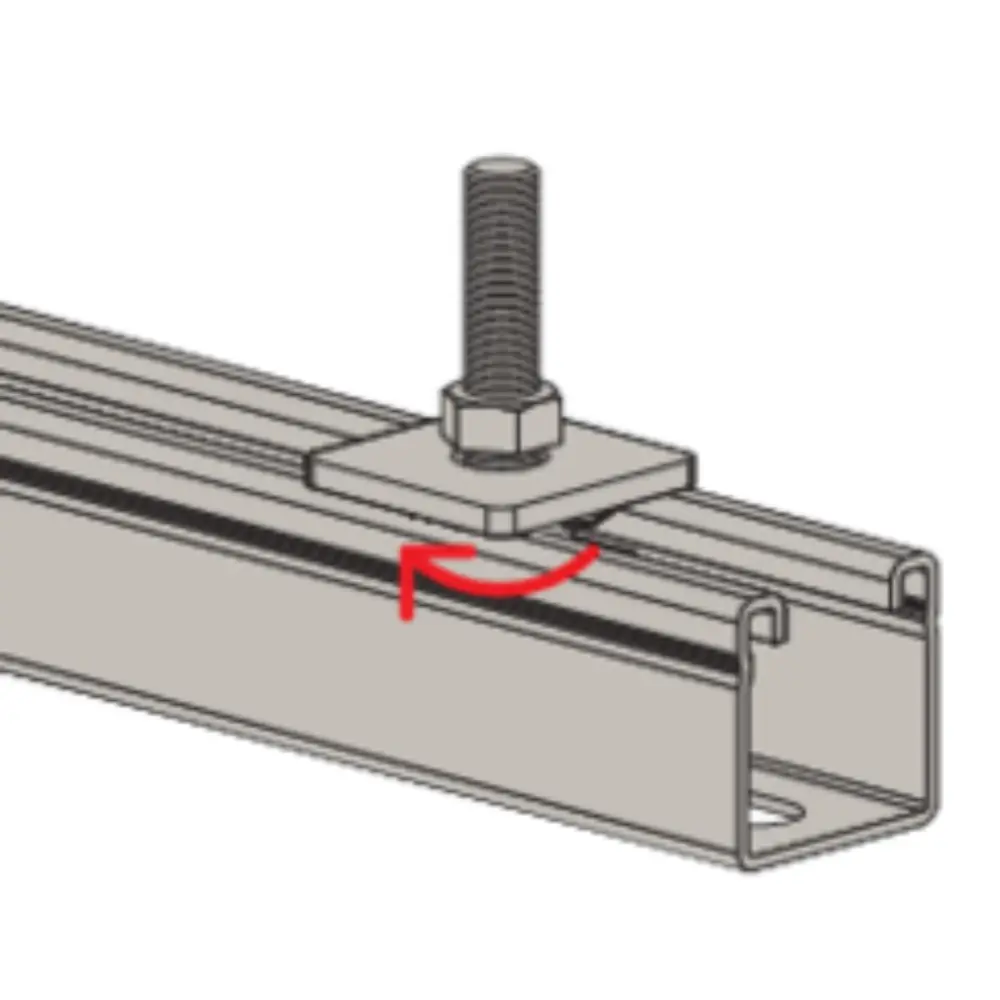 Die fischer Hammerkopfschraube FCN Clix S eignet sich für die schnelle und einfache Befestigung von Rohrschellen in fischer FUS Montageschienen ohne Verwendung zusätzlicher Gewindestifte. Die Hammerkopfschraube wird durch 90°-Drehung mit den Schienen verbunden und hält sich durch den Anpressdruck des Federelementes und der ausgeprägten Verzahnung der Schiebemutter in der Montageschiene FUS an der gewünschten Position. Die fehlerfreie Montage wird durch die Justierbarkeit vor dem Festdrehen der Kontermutter vereinfacht. Der FCN Clix S ist in verschiedenen Größen und Längen verfügbar. Die Ausführung mit galvanischer Verzinkung ist für Installationen in Gebäuden geeignet.