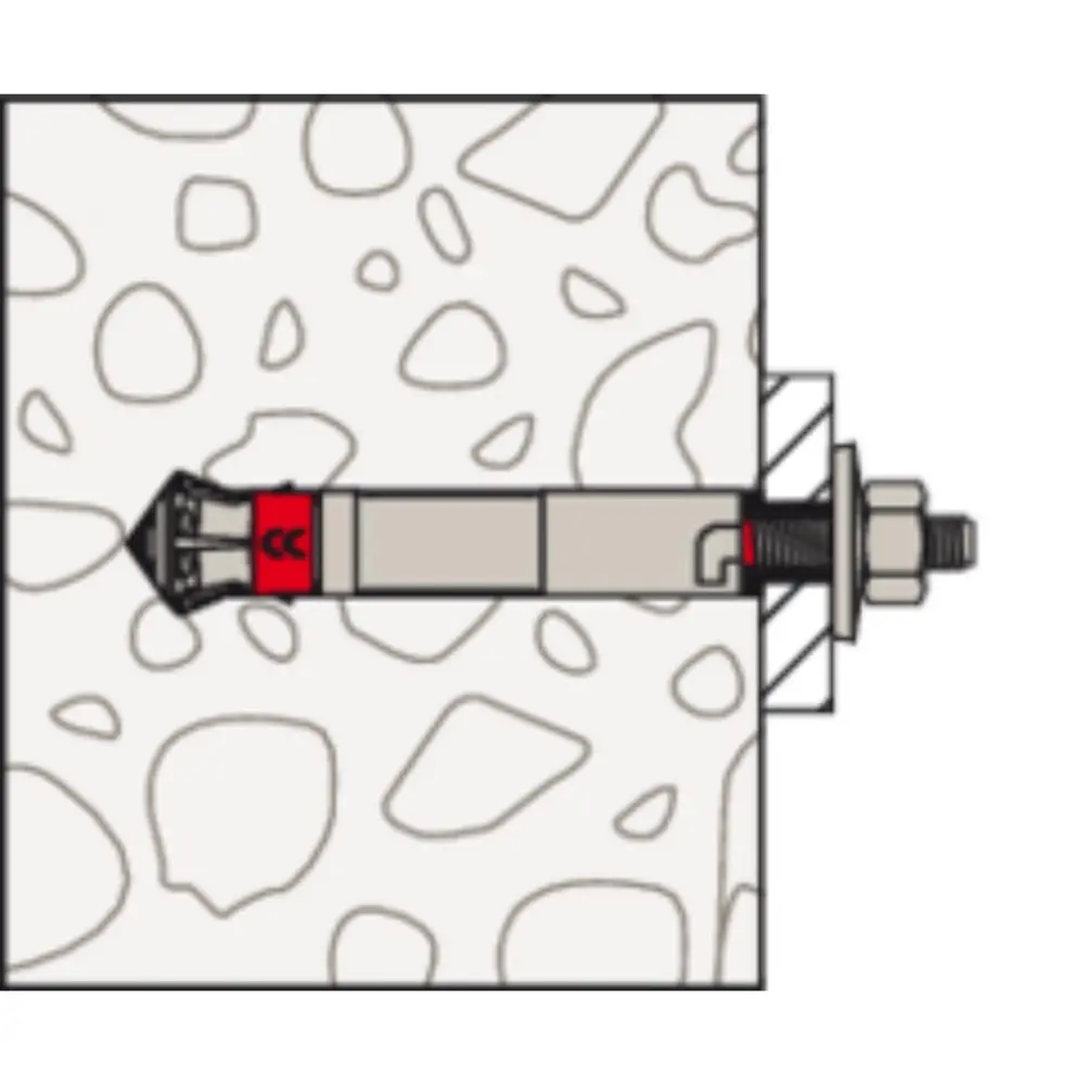 Der fischer Hinterschnittanker FSU ist ein selbstschneidender Hinterschnittanker aus galvanisch verzinktem Stahl für Anwendungen, bei denen höchste Lasten und Sicherheiten gefordert werden (z.B. schwerer Stahl-Anlagenbau, Kernkraftwerke, Öl & Gas Industrie). Der Hinterschnittanker eignet sich ideal für Schwerlastbefestigungen, um Stahlkonstruktionen, schwere Rohrleitungen und Industriemaschinen im Innenbereich in gerissenem und ungerissenem Beton zu verankern. Der FSU wird in der Vorsteckmontage mit dem Setzwerkzeug FSU-ST in ein mit dem Bundbohrer FSU-SD erstelltes Bohrloch gesetzt. Der Anker schneidet sich selbst den Hinterschnitt und erzeugt dabei eine formschlüssige Verbindung. Dies sorgt für maximale Sicherheit auch bei großen Rissbreiten in seismischen Gebieten. Mit dem Demontagewerkzeug FSU-DT lässt sich der Anker schnell und rückstandslos entfernen.