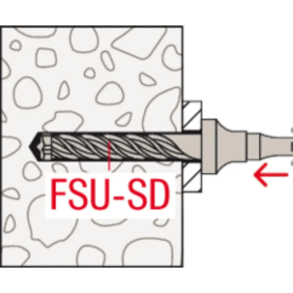 Der fischer Hinterschnittanker FSU-P ist ein selbstschneidender Hinterschnittanker aus galvanisch verzinktem Stahl für Anwendungen, bei denen höchste Lasten und Sicherheiten gefordert werden (z.B. schwerer Stahl-Anlagenbau, Kernkraftwerke, Öl & Gas Industrie). Der Hinterschnittanker eignet sich ideal für Schwerlastbefestigungen, um Stahlkonstruktionen, schwere Rohrleitungen und Industriemaschinen im Innenbereich in gerissenem und ungerissenem Beton zu verankern. Der FSU-P wird in der Durchsteckmontage mit dem Setzwerkzeug FSU-ST in ein mit dem Bundbohrer FSU-SD erstelltes Bohrloch gesetzt. Der Anker schneidet sich selbst den Hinterschnitt und erzeugt dabei eine formschlüssige Verbindung. Dies sorgt für maximale Sicherheit auch bei großen Rissbreiten in seismischen Gebieten. Mit dem Demontagewerkzeug FSU-DT lässt sich der Anker schnell und rückstandslos entfernen.