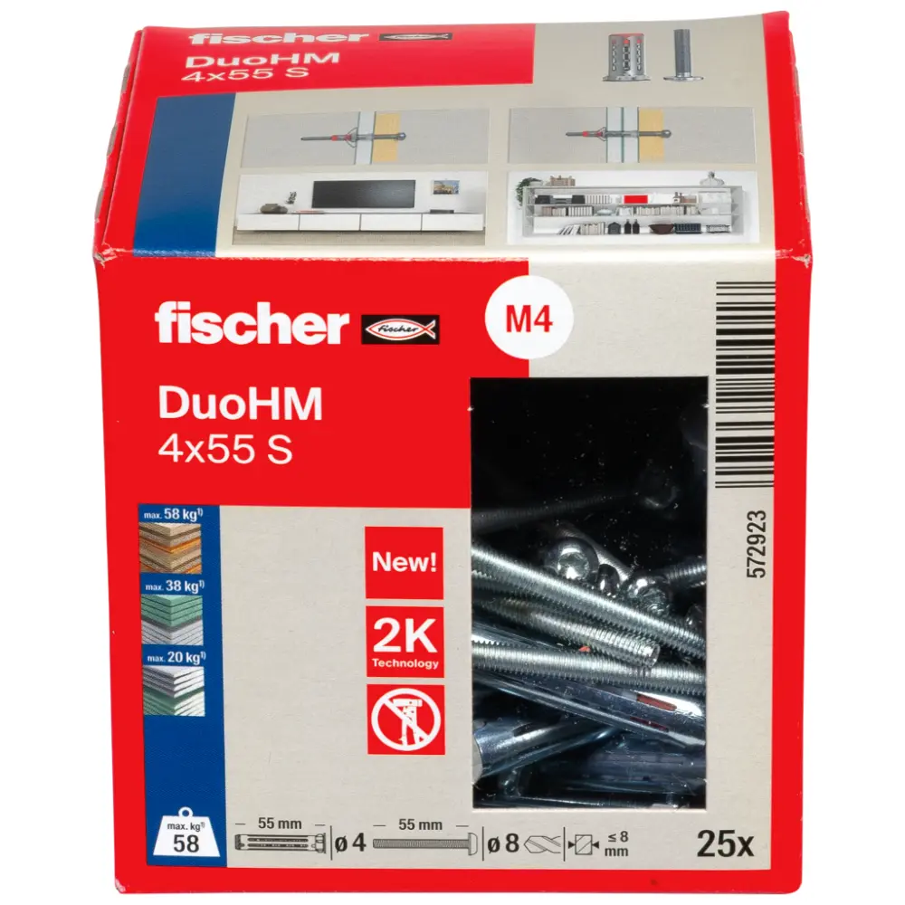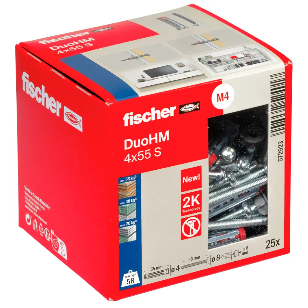 Fischer Hohlraumdübel DuoHM 4x55 S PH TX mit Panhead-Schraube, TX-Antrieb