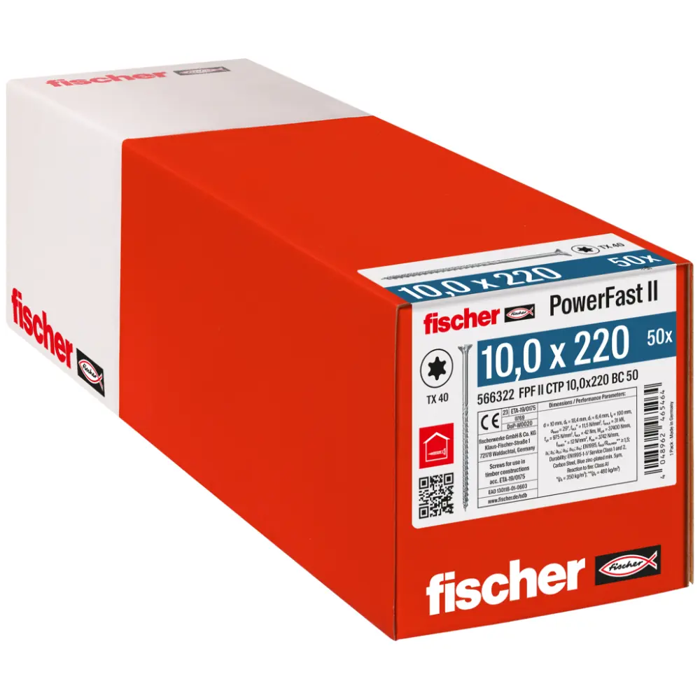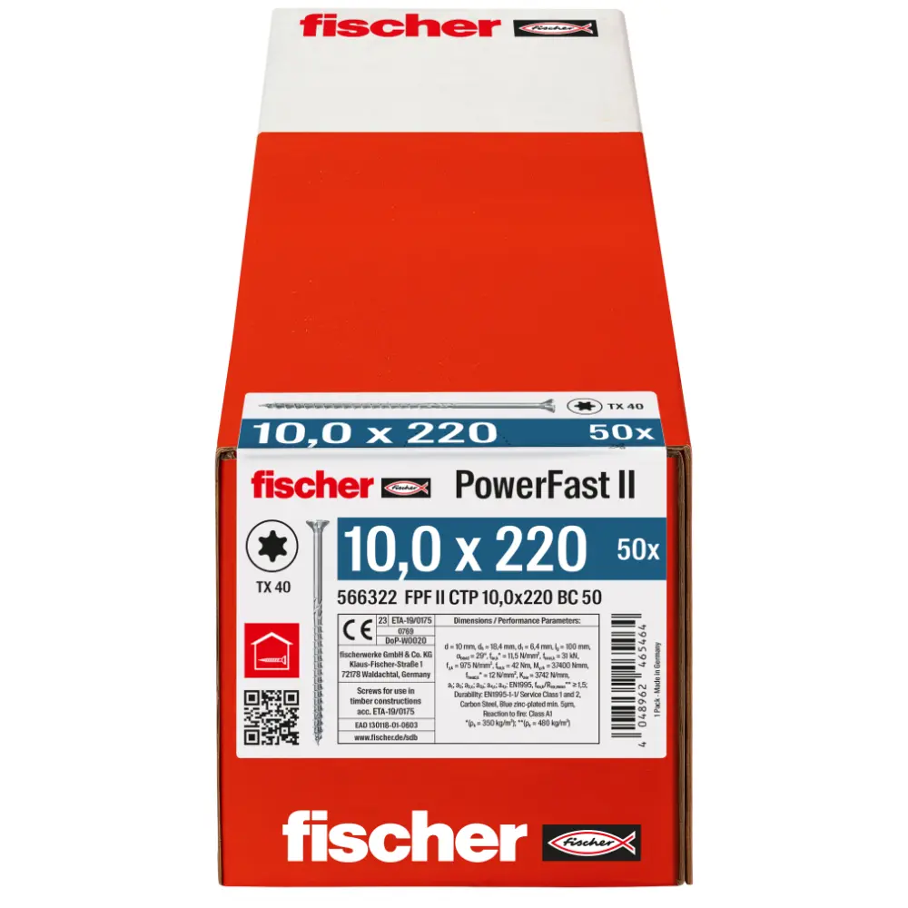 Fischer Holzbauschraube 10,0x220 FPF II CTP BC, Senkkopf, Innenstern TX, Teilgewinde, blauverzinkt