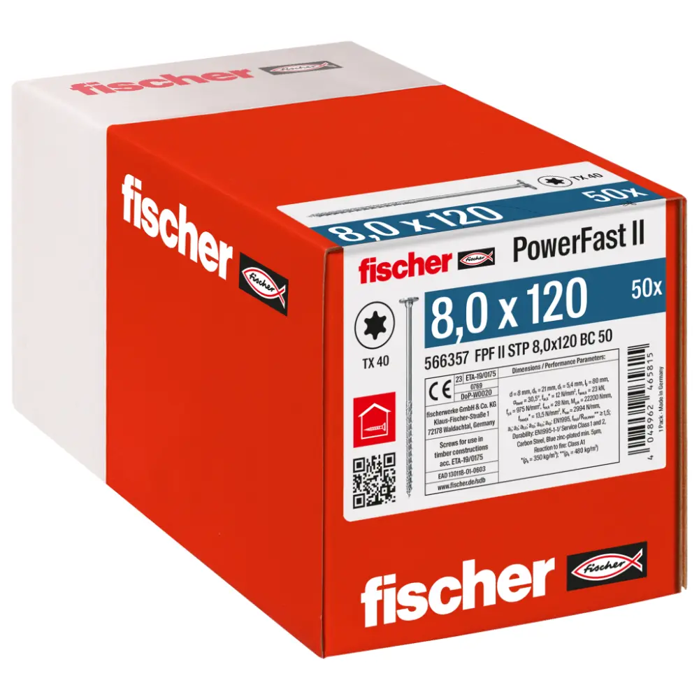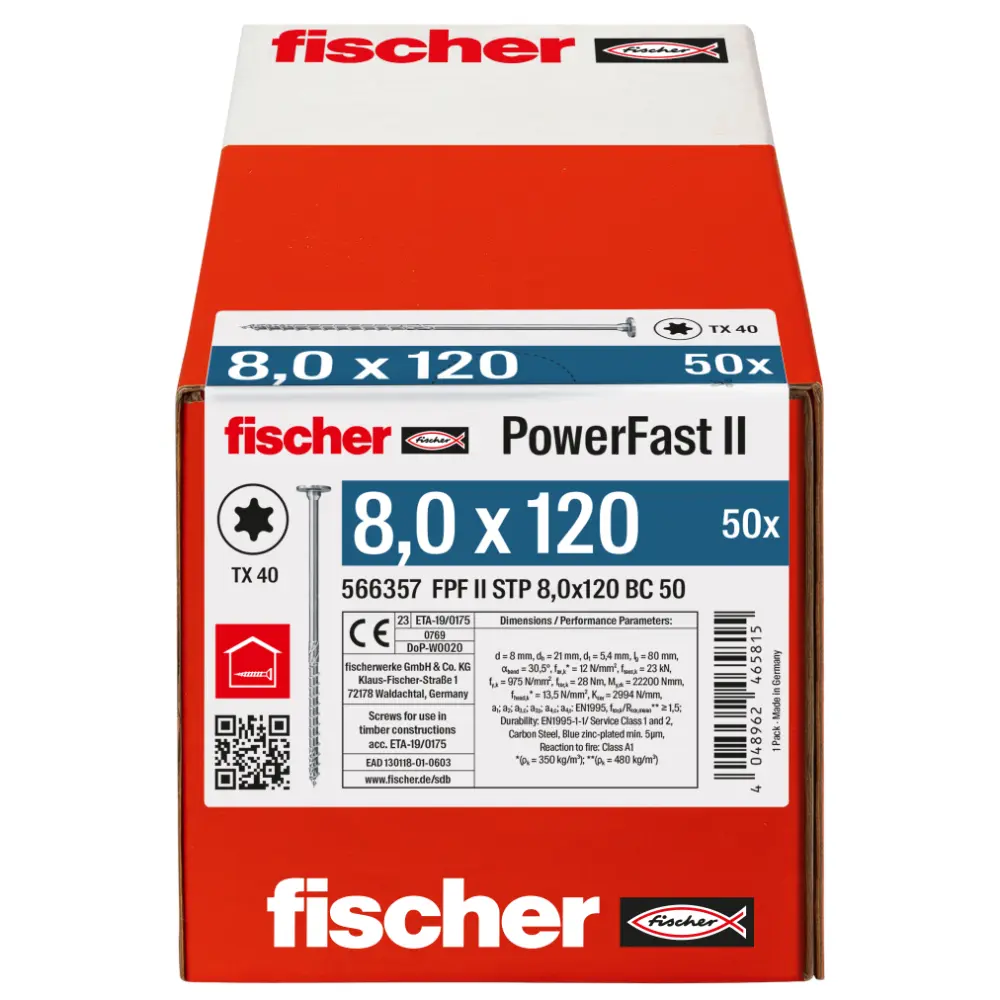 Fischer Holzbauschraube 8,0x120 FPF II STP BC, Stufensenkkopf, Innenstern TX, Teilgewinde