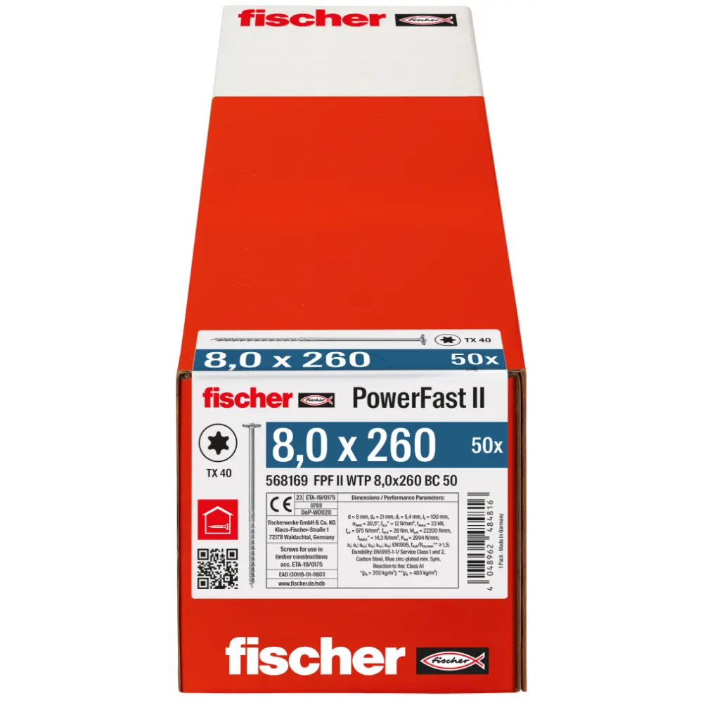 Fischer Holzbauschraube 8,0x260 FPF II WTP BC, Tellerkopf, Innenstern TX, Teilgewinde, blauverzinkt