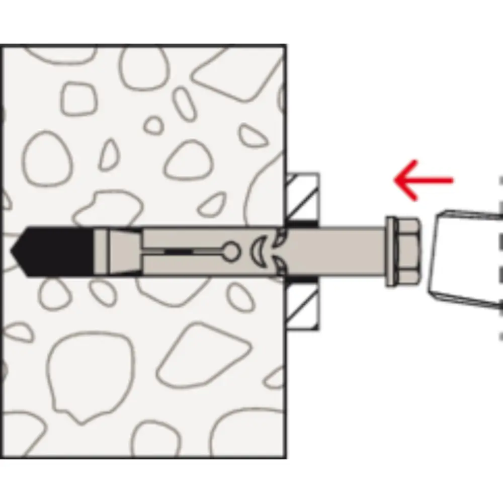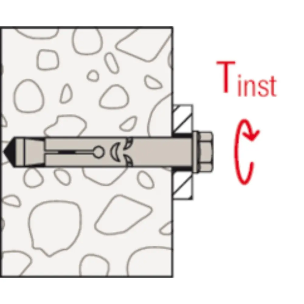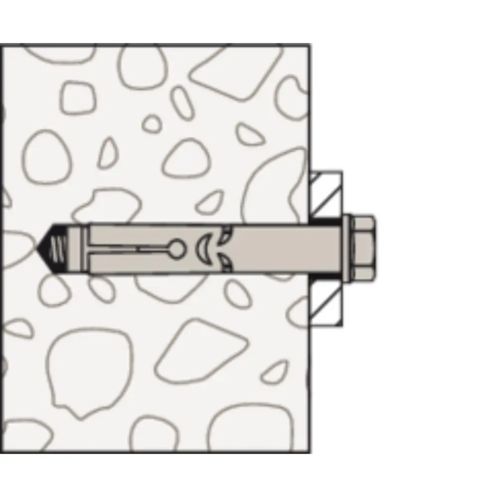 Der fischer Hülsenanker FSA-B ist ein Anker aus galvanisch verzinktem Stahl mit Mutter und Unterlegscheibe für konstruktive Befestigungen aus galvanisch verzinktem Stahl. Der FSA-B wird in der zeitsparenden Durchsteckmontage gesetzt. Beim Anziehen wird der Konus in die Spreizhülse gezogen und verspannt diese gegen die Bohrlochwand. Die Ausstanzungen nehmen den Anzugsschlupf wie eine Knautschzone auf. So wird das Anbauteil an den Verankerungsgrund herangezogen. Der fischer Hülsenanker FSA-B ist ideal für die Befestigung von nicht sicherheitsrelevanten Befestigungen wie Leitern, Toren und temporären Befestigungen in ungerissenem Beton.