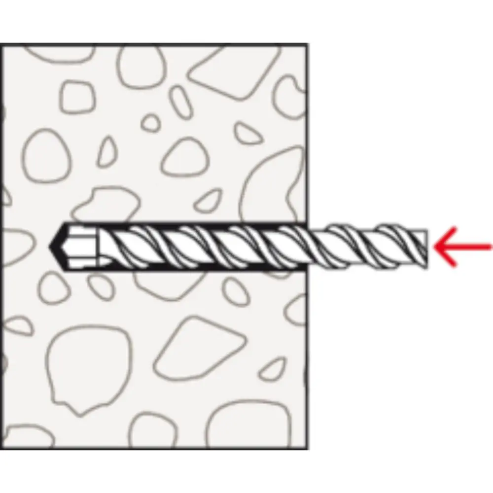 An dem fischer Kabelbinderdübel FCTP mit Öse können Kabelbinder, wie z. B. fischer BN oder UBN, bis 9,5 mm Breite befestigt werden. Dadurch ist es möglich unterschiedliche Kabel und Rohre zu bündeln und zu fixieren. Der Kabelbinderdübel ist einfach zu montieren, indem er ins Bohrloch eingeschlagen wird. Durch seine Dübel Lamellen hält er sicher im Baustoff und den Kabelbinder am geplanten Ort.