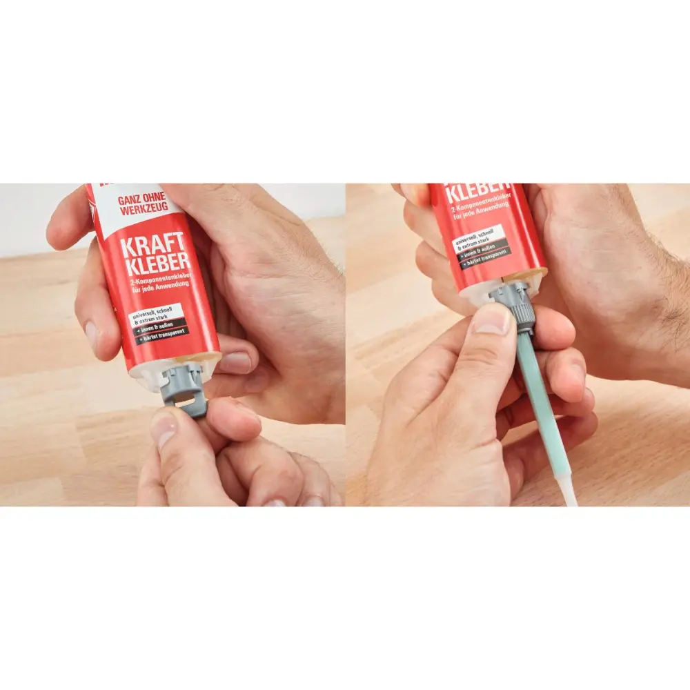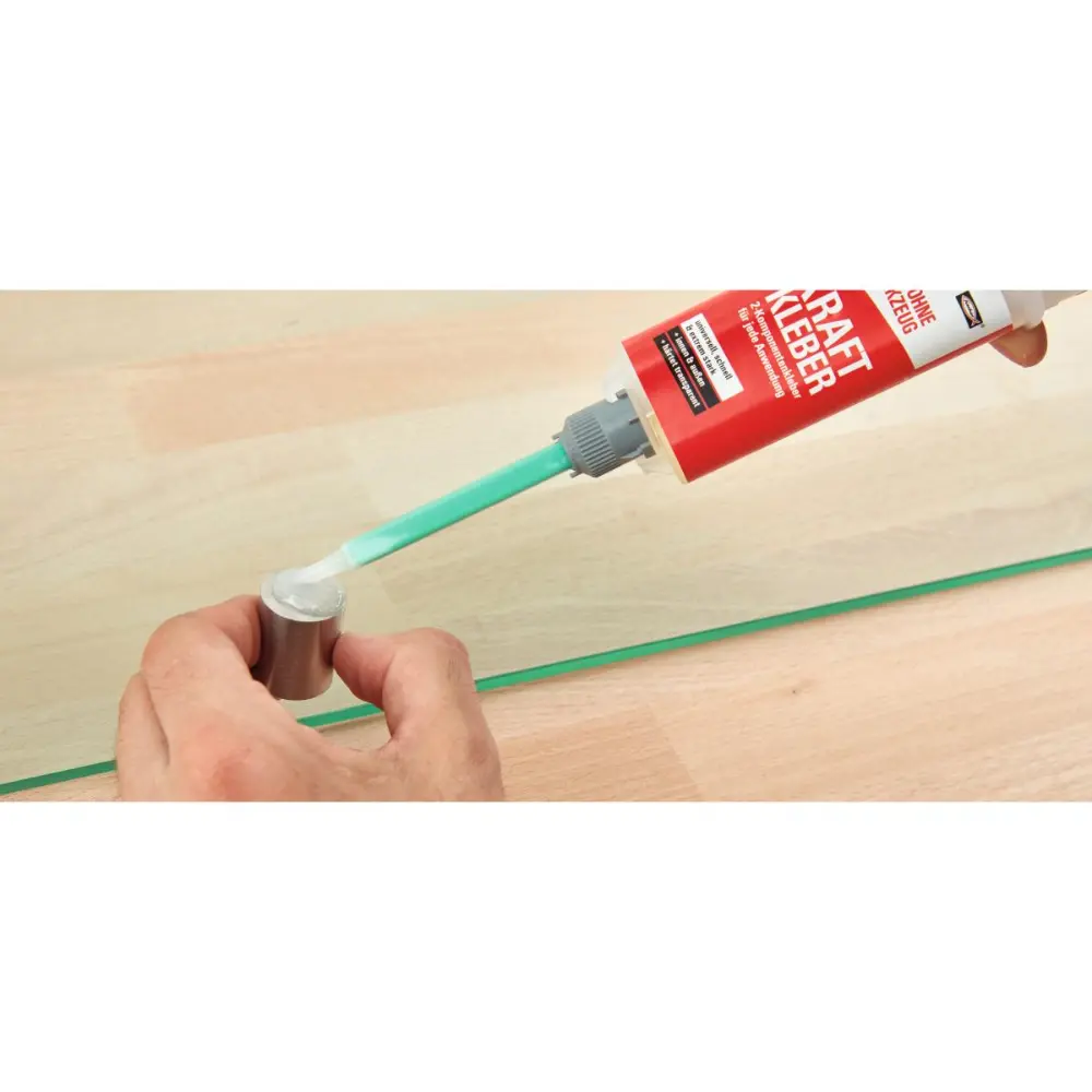 Der fischer Kraftkleber mischt Kraft mit Belastbarkeit. Die Doppelkammerspritze mit dem beigefügten Mischer fügt im 1:1 Verhältnis zwei Komponenten zusammen. Im Ergebnis ein universell einsetzbarer Epoxidharzklebstoff für höchste Belastungen.Anwendung