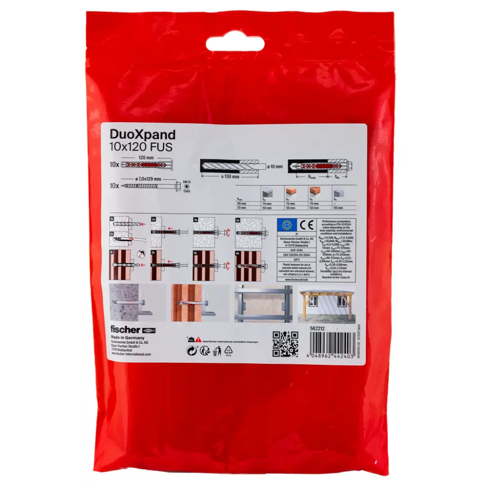 Langschaftdübel DuoXpand 10x120 FUS B (10) mit Sechskantschraube und U-Scheibe von Fischer