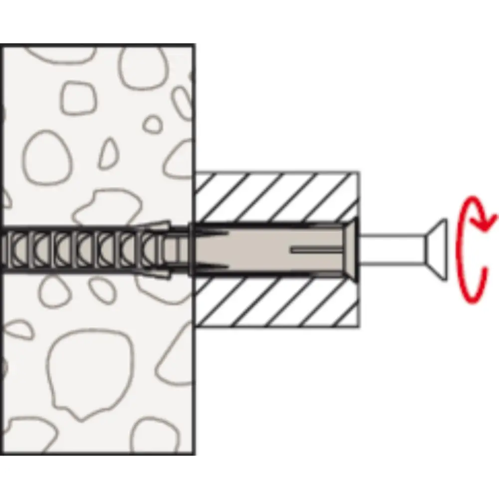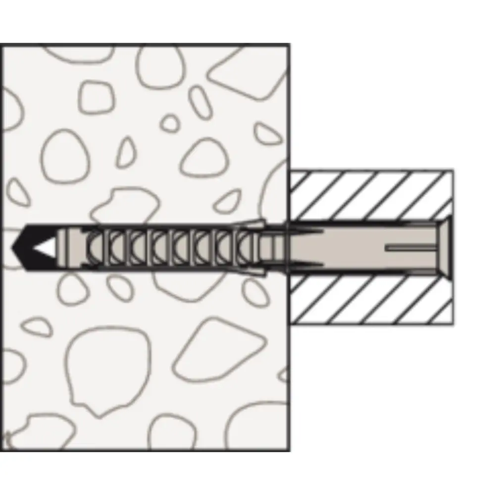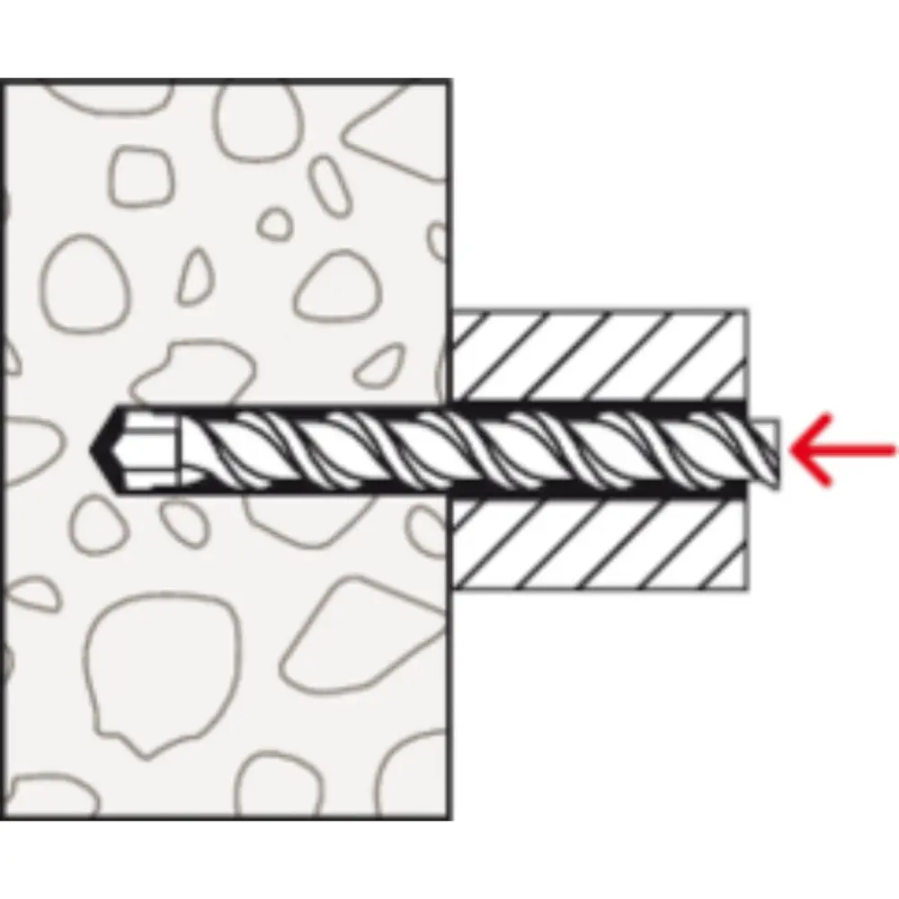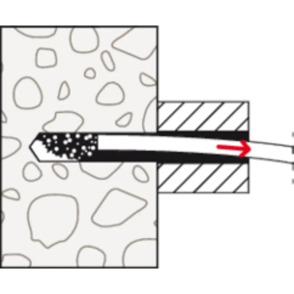 Der fischer Langschaftdübel SXS ist ein Dübel aus hochwertigem Nylon. Aufgrund der geringen Verankerungstiefe von 40 mm lässt sich der Langschaftdübel besonders wirtschaftlich verarbeiten. Der fischer Langschaftdübel SXS-T ist besonders geeignet für die Befestigung von leichten Holzkonstruktionen.Baustoff