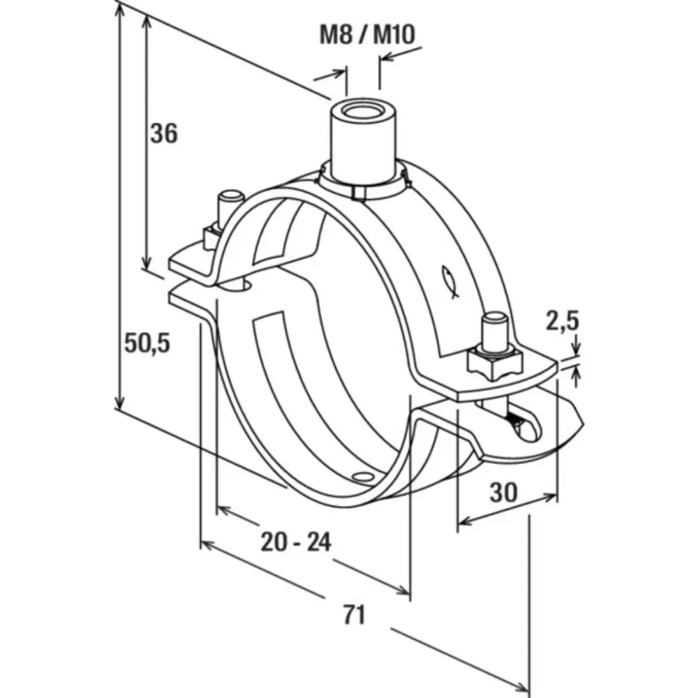 Massivrohrschelle FRSMN 20-24 M8/M10 ohne Einlage von Fischer