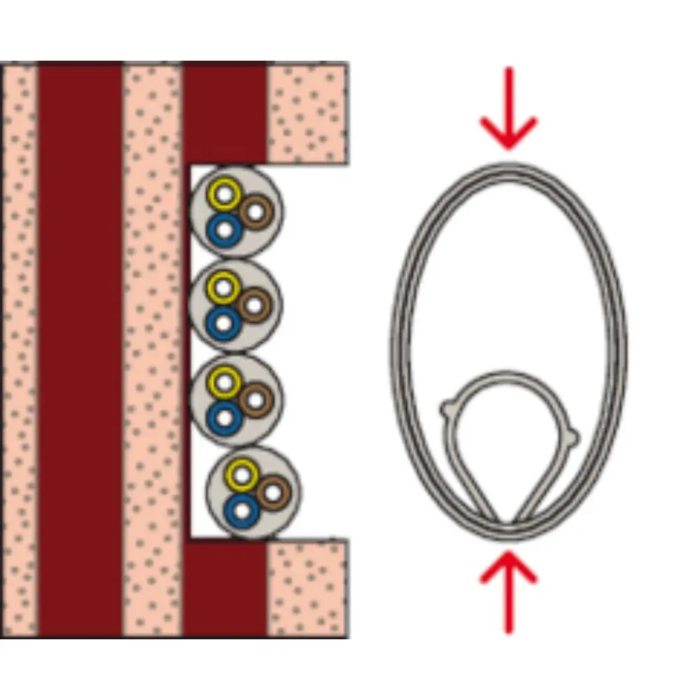 Der fischer Mauernutclip FWSC ist die schnellste Befestigung für Kabel in Kabelschlitzen mit einer Breite von 30 - 55 mm. Der Mauernutclip wird in den Mauerschlitz eingesetzt und verspannt sich dort automatisch, sodass dieser unabhängig von Untergrund immer verwendet werden kann. Durch das einfache Funktionsprinzip können keine Leitungen beschädigt werden und die Montage wird erheblich erleichtert und beschleunigt.