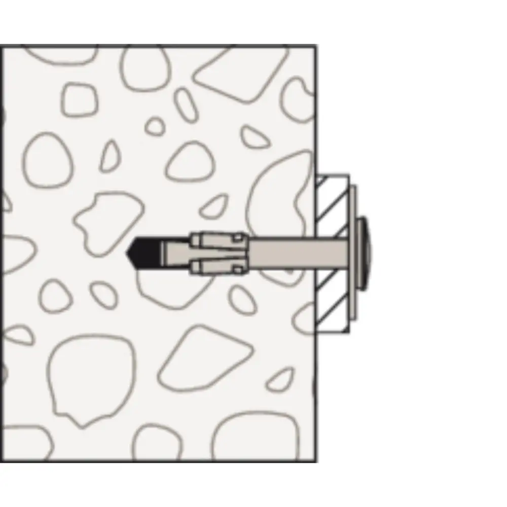 Der fischer Nagelanker FNA II U R RB mit vormontierter Unterlegscheibe eignet sich optimal als demontierbare Verankerungslösung für Brandschutzplatten und zur Mehrfachbefestigung von nicht tragenden Systemen in Beton. Die Europäische Technische Bewertung und die Brandeignung nach Feuerwiderstandsklasse R 120 bieten ein Plus an Sicherheit. Der FNA wird mit wenigen Hammerschlägen oder mit dem Bohrhammer zeitsparend in der Durchsteckmontage gesetzt. Der optimierte Spreizclip sorgt für Halt bereits beim Einstecken ins Bohrloch und verhindert das Herausfallen bei Überkopfmontage. Der massive Schaftquerschnitt garantiert eine hohe Tragfähigkeit im Brandfall und bietet dadurch sehr hohe Sicherheit. Bei Belastung spreizt der FNA II selbstständig nach.Prüfzeichen / Zulassungen