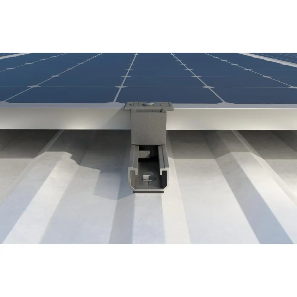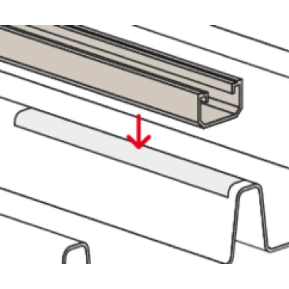 fischer SolarMetal L ist eine Schiene aus Aluminium AW 6063 T66 für den Bau von Konstruktionen für Photovoltaikanlagen auf Trapezblechdächern. Das Profil ist für die Befestigung entlang der Blechrippen optimiert und ermöglicht die Montage von Photovoltaik-Paneelen im Landscapeformat / Querformat (lange Seite orthogonal/rechtwinklig zur Hochsicke des Trapezblechs). SolarMetal L ist sowohl mit den Universalklemmen PMU/PMCU als auch mit den vormontierten Klemmen PM-F/PM-C kompatibel. Vorgebohrtes Schienenstück mit vormontiertem EPDM. Kompatibel sowohl mit ALG-Nieten als auch mit selbstbohrenden EPDM-Schrauben.| Anzahl Bohrungen: | 2 |