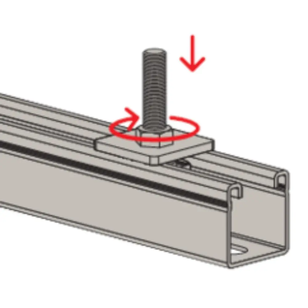 Die fischer Schiebemutter FCN Clix M ist geeignet, um Rohrschellen mit einer Gewindestange zu verbinden. Die Bauform lässt ein einfaches und schnelles Setzen in der Schiene zu. Die Federwirkung der Kunststoffbügel gewährleistet eine einfache und präzise Positionierung in der Schiene. Die Montage mittels Drehung um 90° ermöglicht die nachträgliche Montage in gesetzten Schienen.