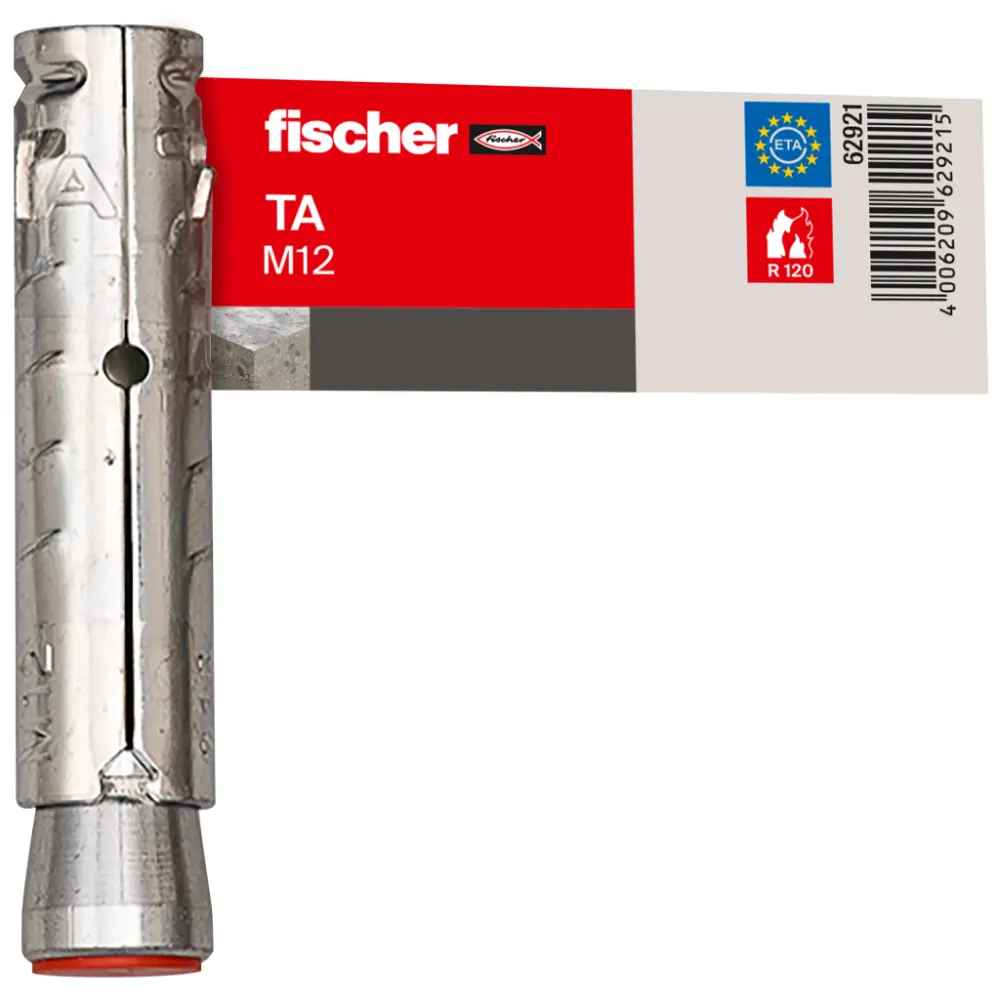 Der fischer Schwerlastanker TA M ist ein Innengewindeanker aus galvanisch verzinktem Stahl für die Vorsteckmontage. Bei der Montage wird der Konus in die Spreizhülse gezogen und verspannt diese gegen die Bohrlochwand. Die Kunststoffkappe schützt das Gewinde vor Verschmutzung. Dieses bleibt dadurch gängig. Der Schwerlastanker ist ideal für die Befestigung von Absturzsicherungen, Anlagen und Maschinen in ungerissenem Beton.Prüfzeichen / Zulassungen