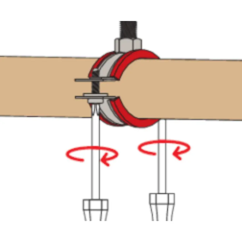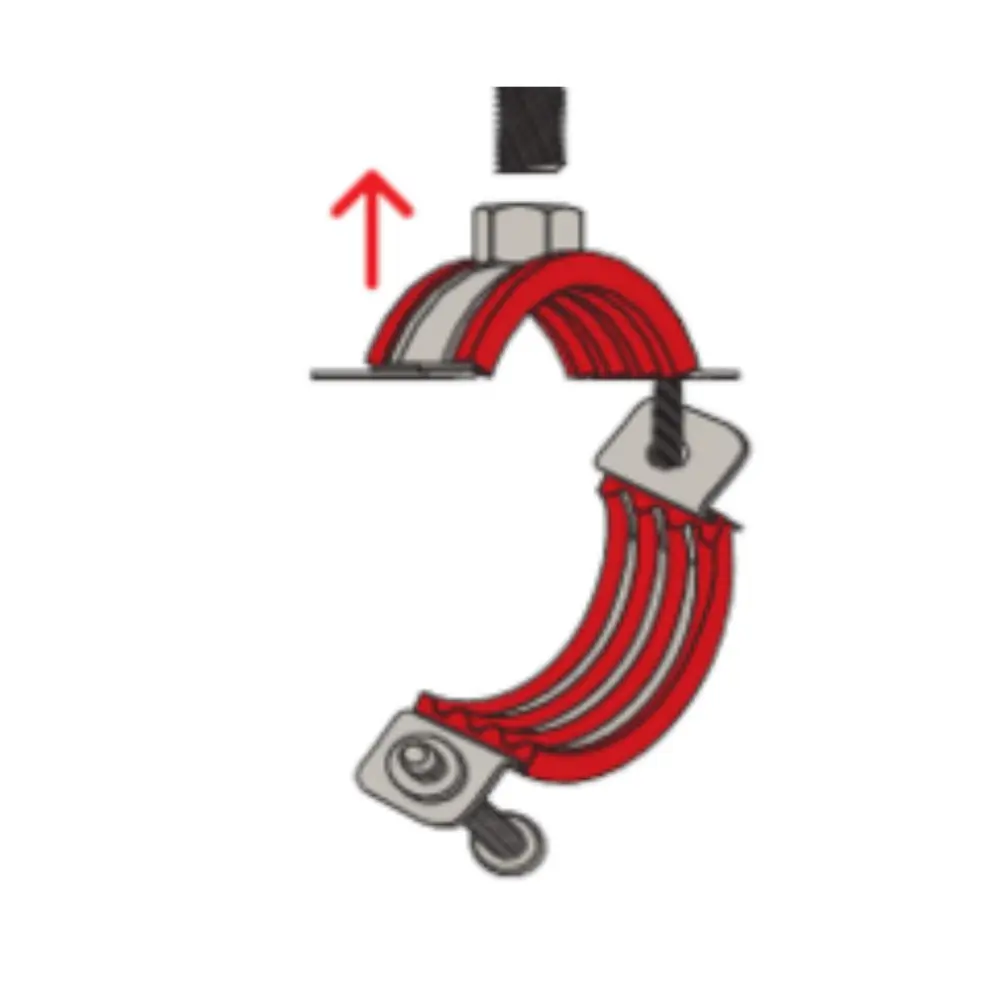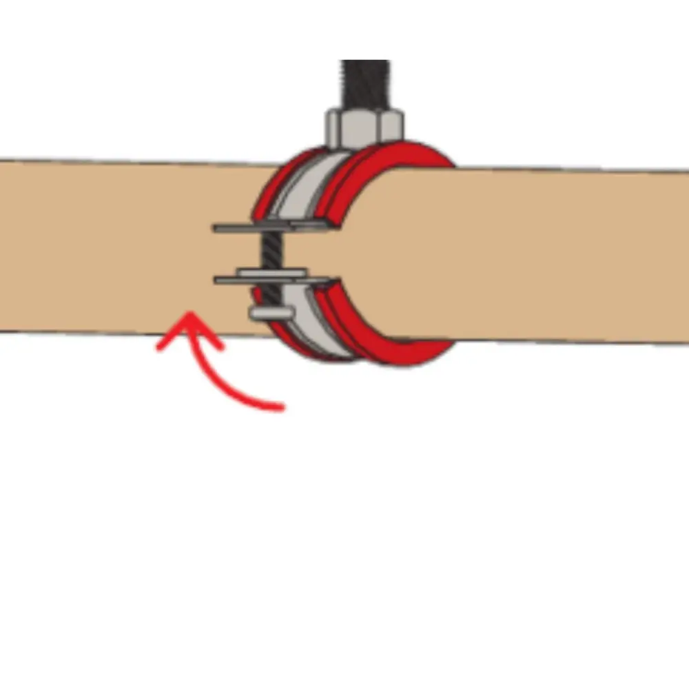 Die fischer Rohrschelle FRSH ist eine zweischraubige Rohrschelle aus galvanisch verzinktem Stahl der Werkstoffgüte DD11 mit einer hochtemperaturbeständigen Silikon-Schalldämmeinlage. Die Ausführung mit zwei Schrauben ermöglicht die optimierte Anpassung an den Rohraußendurchmesser. Damit können Heißwasser- und Dampfleitungen mit Medien bis +220 °C und einem Außendurchmesser von 15 - 168 mm mit Gewindestange oder Stockschraube im Innenbereich sicher befestigt werden. Die Rohrschelle entspricht mit einer chlorfreien Schalldämmeinlage den Anforderungen der DIN 4109.